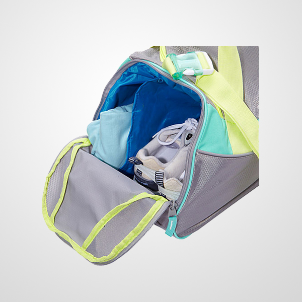 Roomy main compartment complete with an interior zippered mesh pocket, open mesh pockets for clothing and other gear, a tricot-lined media safe pocket for your cell phone or MP3 player, and a key fob