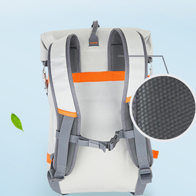 Roll Top Backpack with an EVA back panel and shoulder straps keep you comfortable