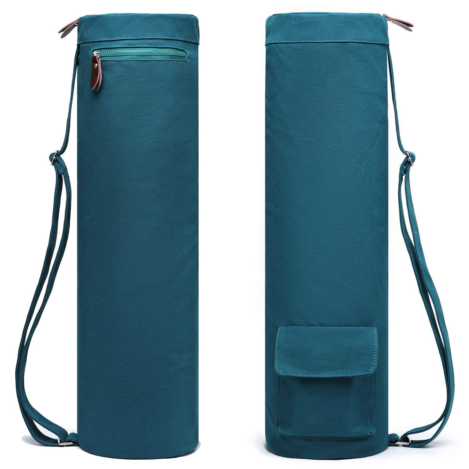 Dimensions: 26" Long x 7" Diameter, It can hold any mat up to 2/5-inch(10mm) thick and 25-inch(64cm) wide. Material: 100% High Quality Canvas with Clear Print. Design: Full Zipper Design, Adjustable shoulder makes accessing and carrying easy. Multifunctional Pockets are perfect for Keys, Wallet, Cell Phone, Water Bottle and Other Workout Essentials.