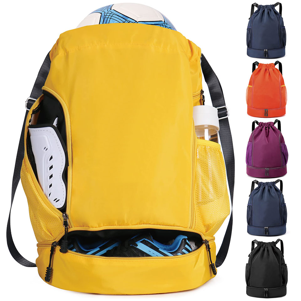 Wholesale Custom Logo sports gym bag Gym Backpack Drawstring Bags with Ball Holder for Basketball Baseball Volleyball