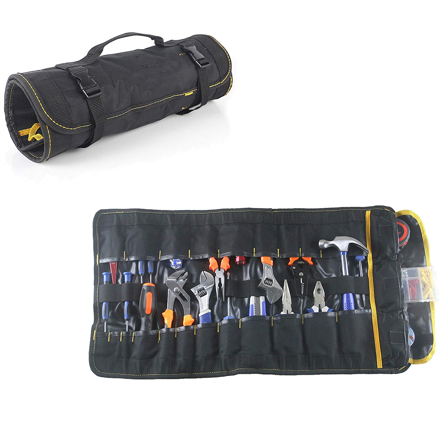 • 25 pockets to organize and protect wrenches, sockets, screwdrivers, tire gauges