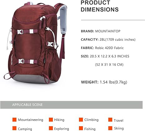 Essential details Application: Outdoor, Sport, Travel, Hiking, Camping, Mountaineer Material: Nylon Capacity: 28L Color: Customized Certificates: BSCI,Sedex,TUV,ISO9001 Sample time: 5-7 Days Warranty: 1 year against defect of materials and manufacturing OEM/ODM: Acceptable MOQ: 500pcs