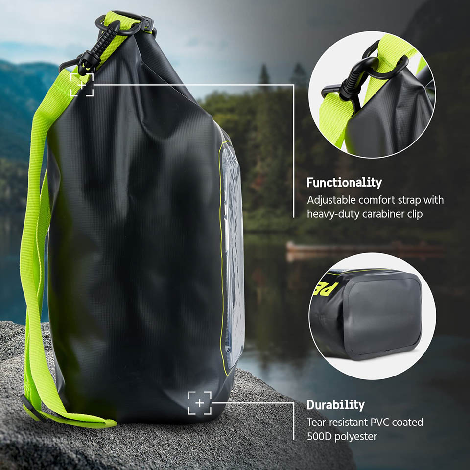 【Adjustable Shoulder Strap】Carry the dry storage bag easily with the detachable, adjustable shoulder strap; you can wear it like a backpack or cross it across your chest for hands-free hiking and adventures; the bag also includes A D-ring (keychain) for easy attachment to your kayak, canoe, backpack or boat.