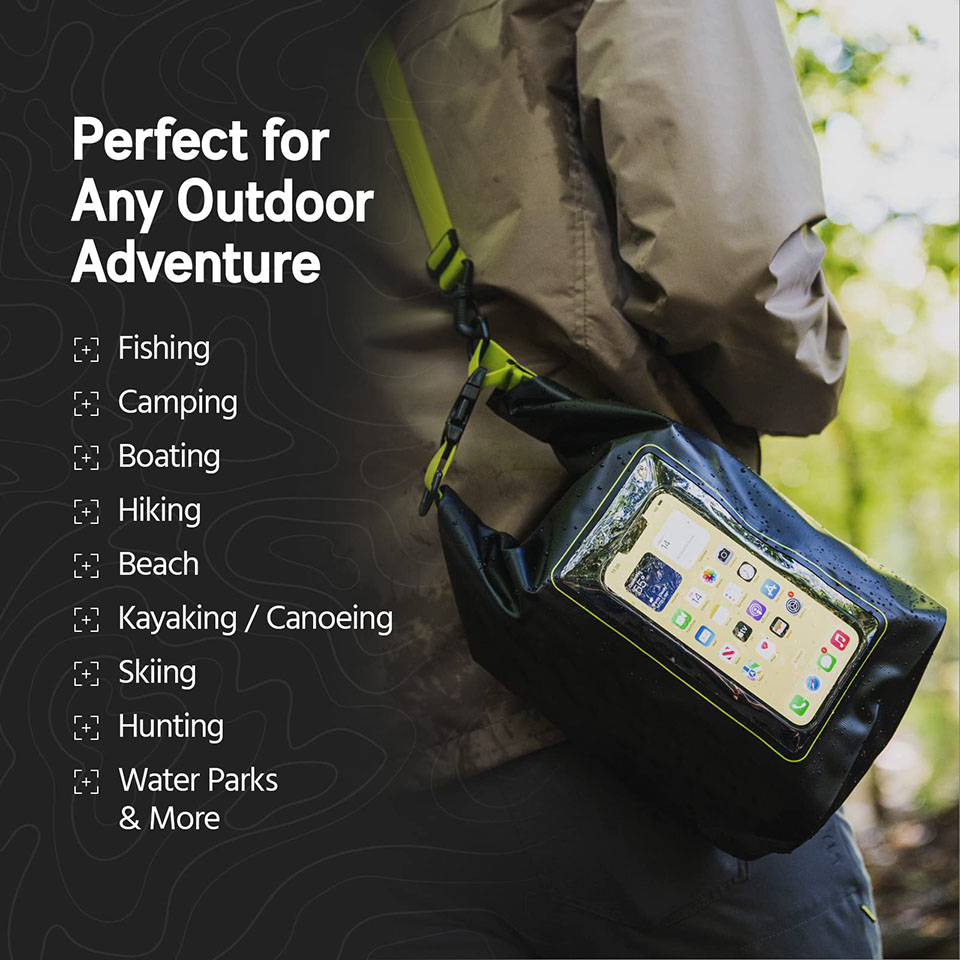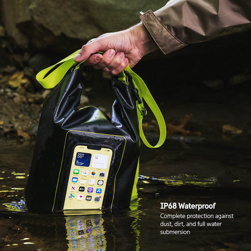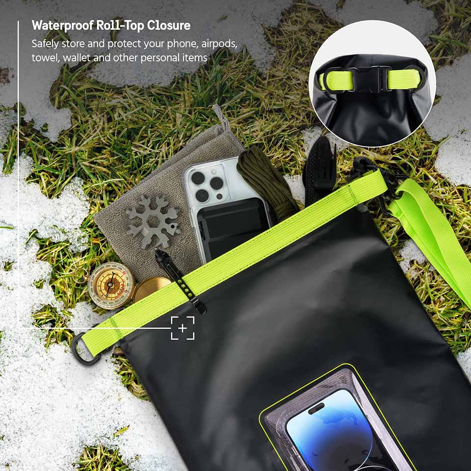 【IP68 Certified Waterproof】With excellent waterproof sealing performance (IP68 rating), this 100% airtight waterproof bag provides full protection for your mobile phone and other items in various environments; the waterproof roll-top closure ensures a perfect seal and prevents water, snow, dust, sand, and dirt get in.