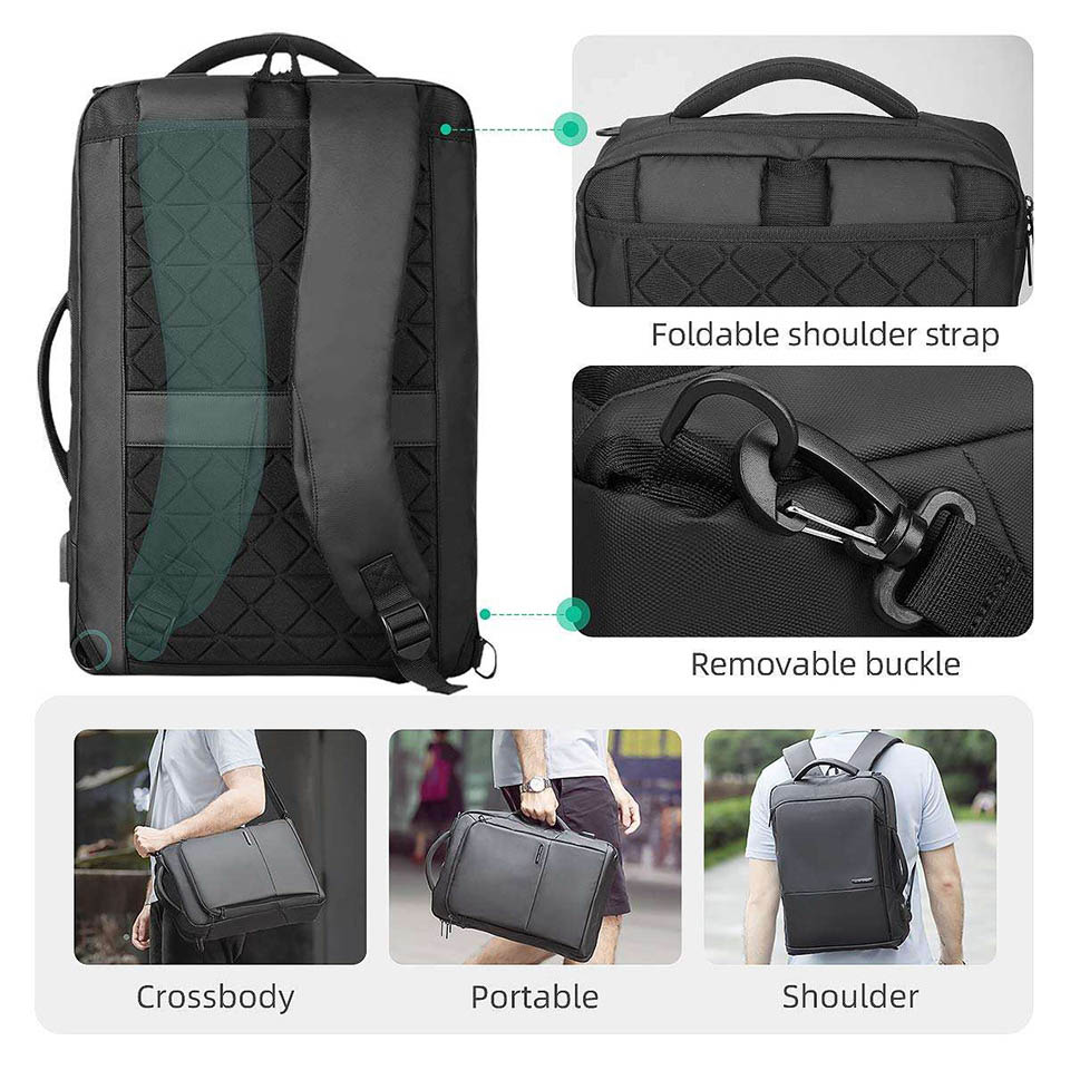 3 in 1 Waterproof Travel Business Backpack with Removable Buckle and USB Charging Port