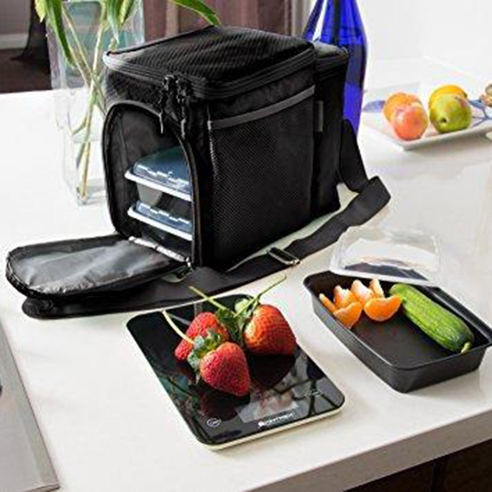 1.You get 3 Portion Control Containers - Enough containers to get you started on the road to achieving your goal with meal prep. 2.You get 4 Massive Insulated Compartments - A Heap of room to put all your containers inside, plus room for 2+ shakes and fruits,nut,vitamins and anything else you can think off. 3.All Containers and are BPA Free, dishwasher, microwave and freezer safe. - This mean you get put these containers anywhere you like and they are going to stand up to the test of time. 4.Has a Handle and Shoulder strap.