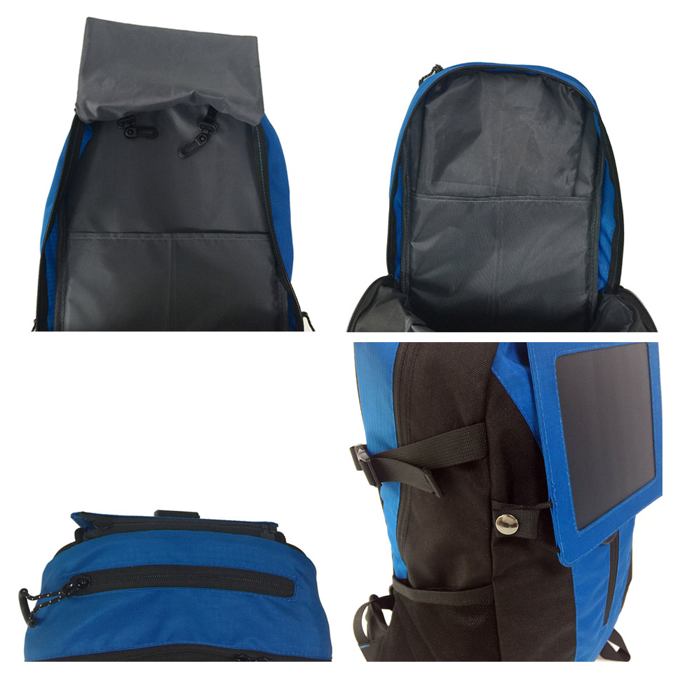 backpack can harness the power of the sun and the included solar panels to hold all your small