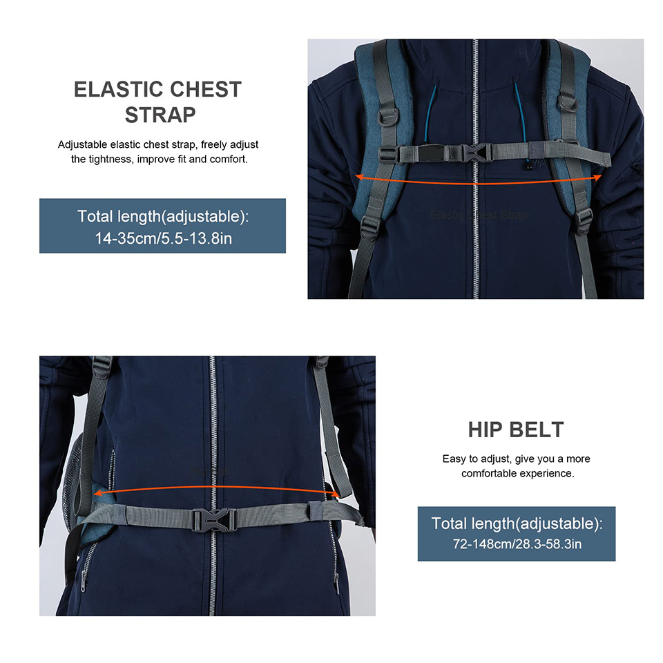 Essential details Place of Origin: Fujian, China Feature: Waterproof Type: External Frame Brand Name: Chaumetbag Main Material: Nylon Lining Material: Polyester Style: Fashion Closure Type: zipper Handle/Strap Type: Soft Handle Pattern Type: Characters Capacity: 36-55 Litre Interior: Interior Zipper Pocket Carrying System: Physiological Curve Back Item Name: Hiking Backpack Size: W30*H53*D16cm or Customize Color: Customize Logo: Customize logo Printing: CMYK,Silk screen, Heat transfer Material: Nylon Sample time: 5-7 days MOQ: 500pcs Delivery time: 25 days after sample confirmed read More