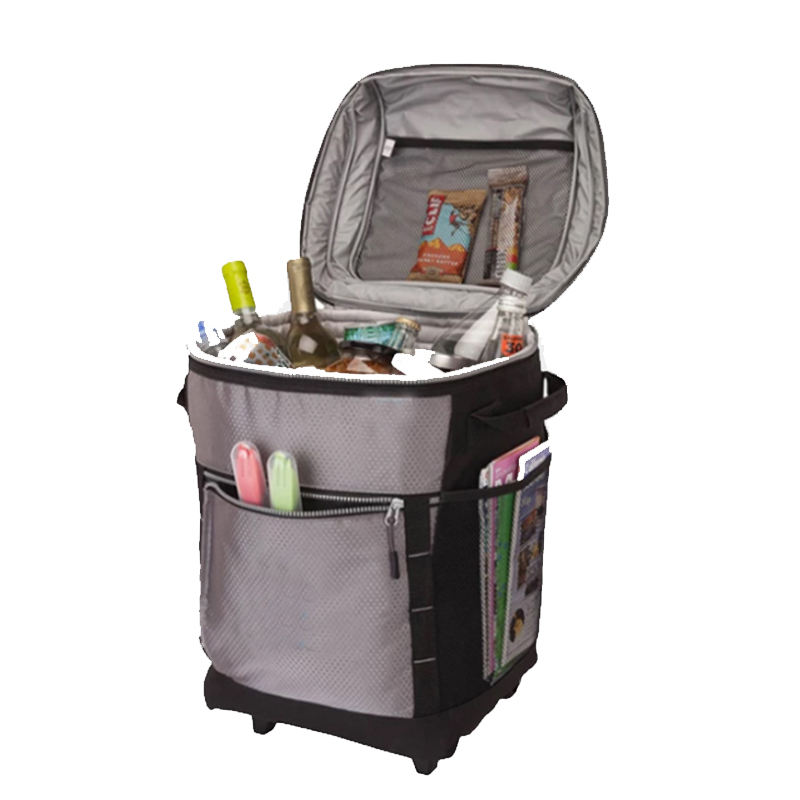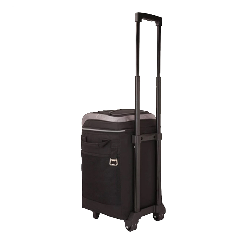 Essential details Place of Origin: Fujian, China Brand Name: chaumetbag Material: Polyester, Polyester + Insulated Foam+PEVA Type: Trolley Use: Food Feature: Waterproof, insulated Pattern Type: solid Product name: Rolling Cooler Bag Usage: Carry Food Color: Black Size: 13.3 x 9.8 x 13 inches Logo: Accept Customized Logo MOQ: 500pcs Sample time: 7-15 Days Certificate: BSCI/ISO9001/Sedex