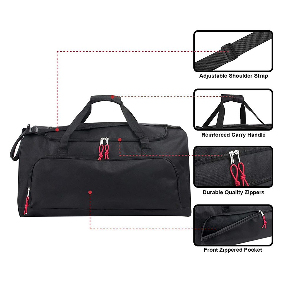 Essential details Style: Fashion Place of Origin: Fujian, China Material: Polyester Have Drawbars: NO Pattern Type: Letter Gender: Unisex Closure Type: zipper Product name: Tote Gym Bag Logo: Customs Logo Color: Customized Colors Packing: 1pc/polybag Design: Fashionable Feature: Lightweight Function: Multi-functional Usage: Outdoor Sports Type: Wear-resistant Waterproof Duffle Gym Bag