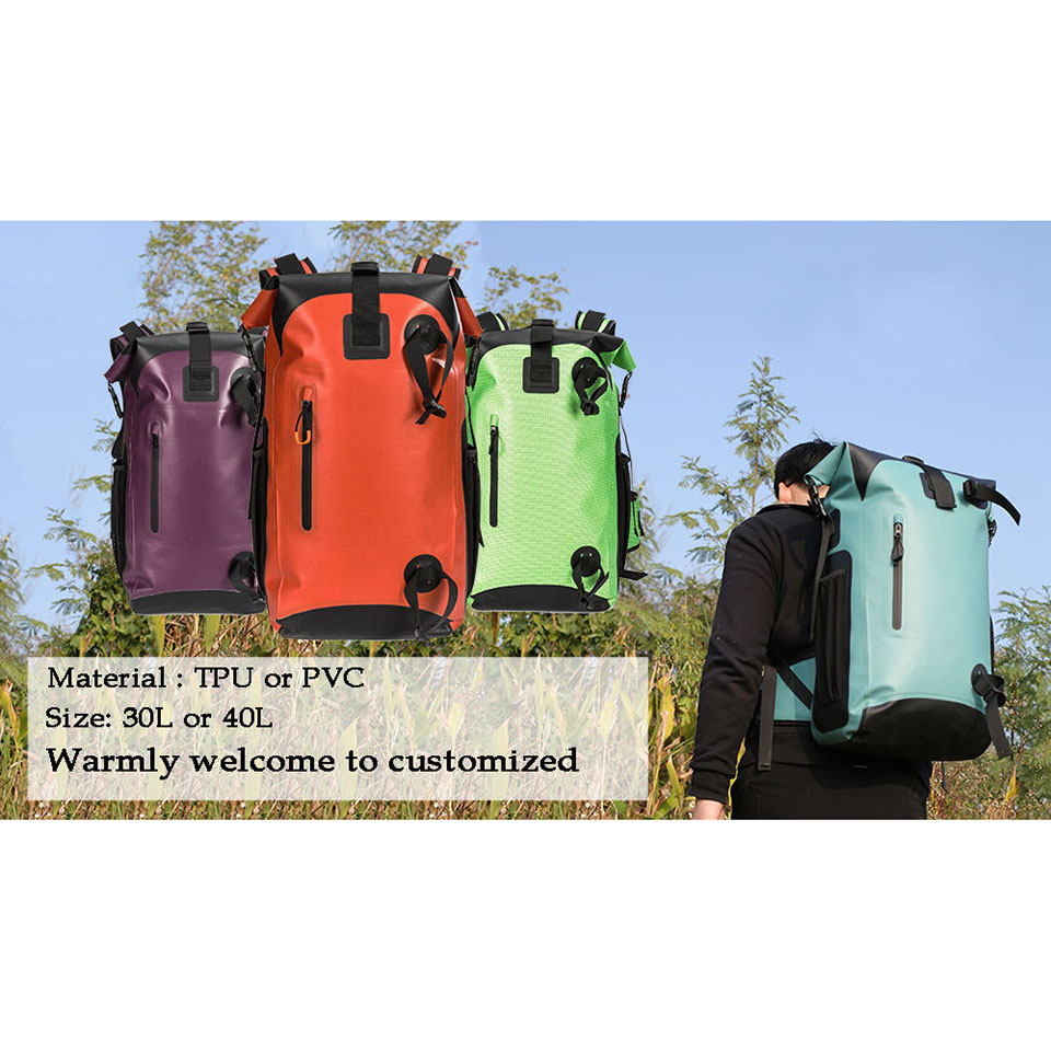 Essential details Pattern Type: custom Place of Origin: Fujian, China Brand Name: chaumetbag Material: TPU Type: Backpack Feature: Waterproof Gender: Unisex feature: waterproof,safe,comfort Color: black,blue or odm wocean pack dry bag moq: 500pc  style: pwaterproof camping backpack sample: 7days service: ODM&OEM  PACKING: waterproof PVC dry bag polybag+ctn Usage: Outdoor Activities,travel