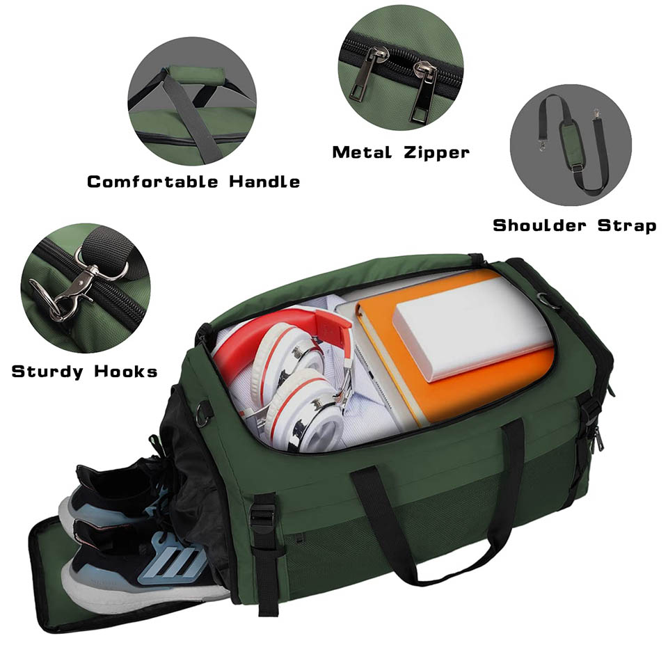 65L Large Sports Gym Bag Travel Duffel bag with Wet Pocket & Shoes Compartment for Men and Women
