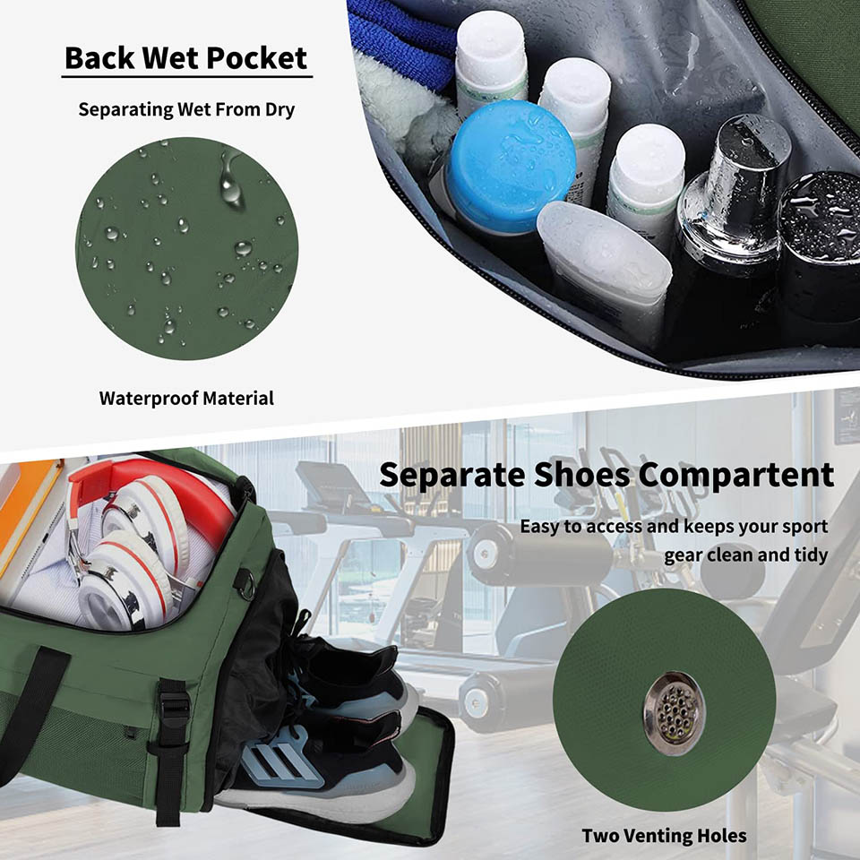 Dry & Wet Compartment Separation: This gym tote delivers spacious storage with 1 large