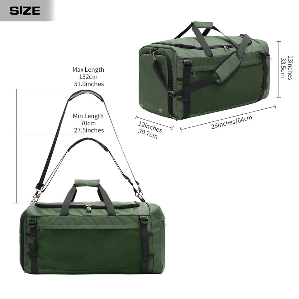LARGE DUFFEL:25 x 13 x 12 Inches, 65L. Enough space for personal exchange clothes for