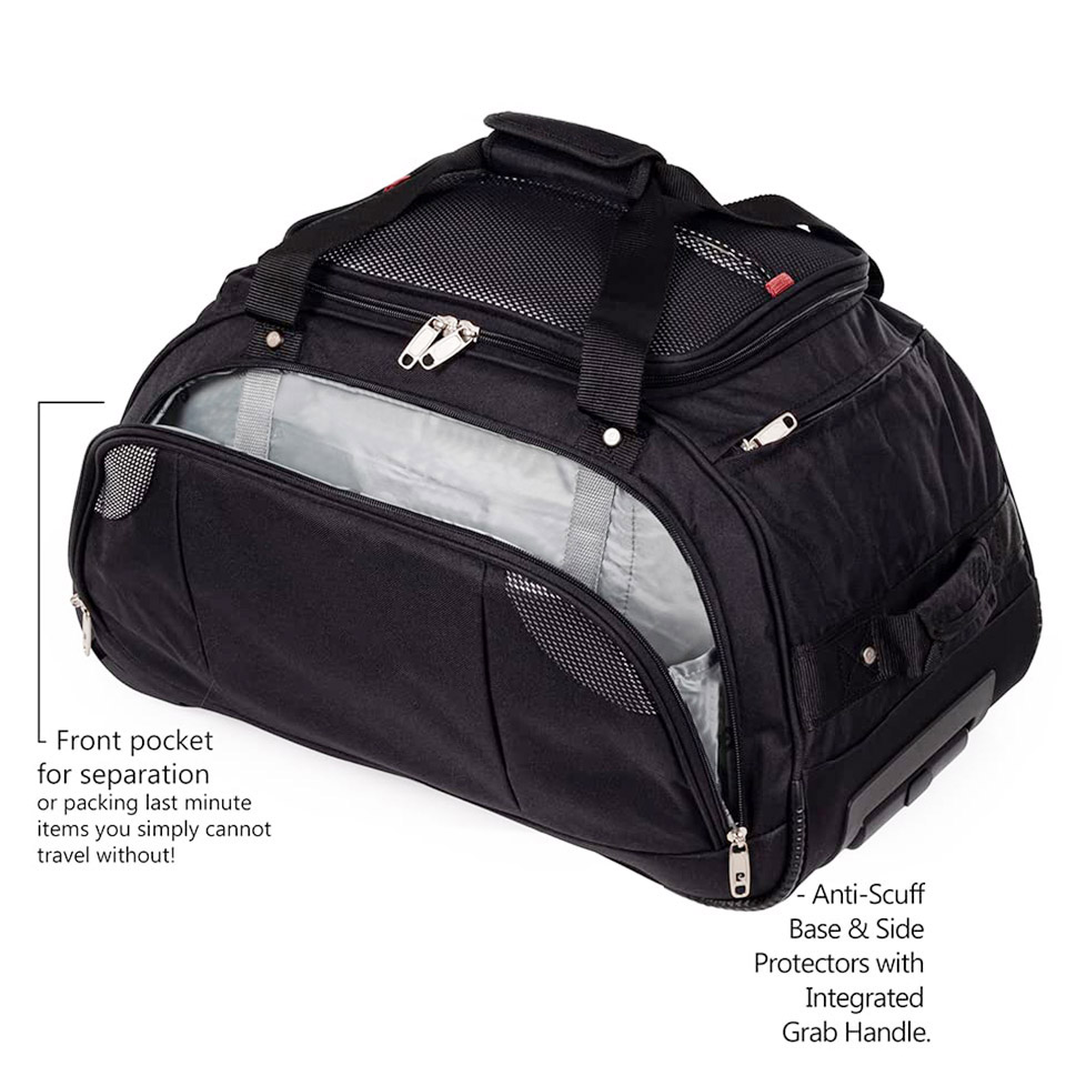 STRESS TESTED: Our best-wheeled holdall has long-lasting easy-glide skate wheels, the wheels are recessed into the case which helps prevent them from snapping off when clearing curbs and rolling over uneven surfaces.