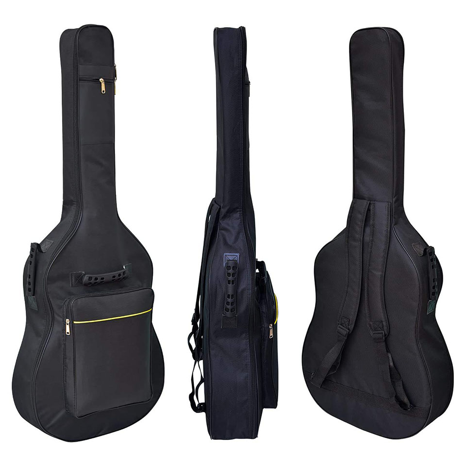 * Features and details Strong and durable: the guitar bag is made of waterproof Oxford cloth and lasts longer. Sponge padding can protect your guitar from scratches, collisions or other damage.