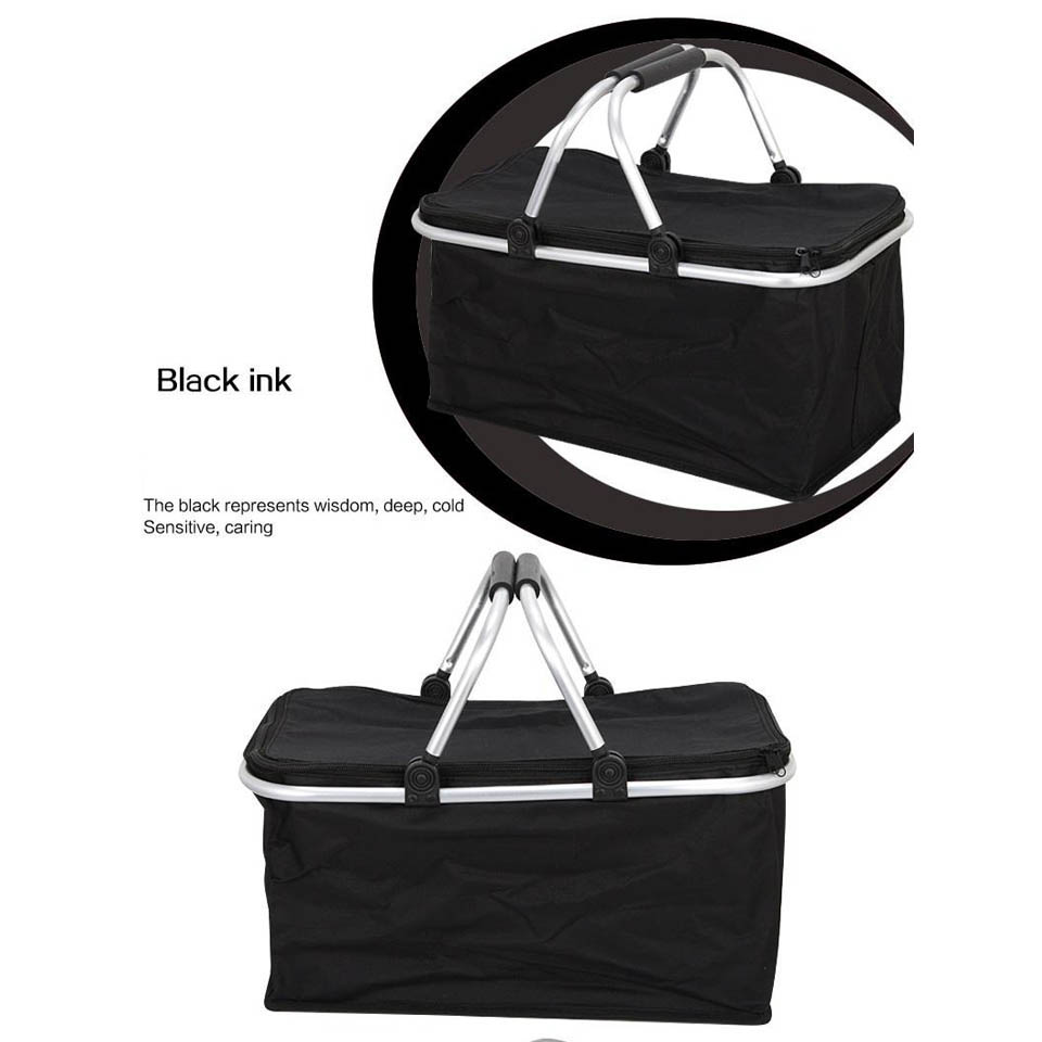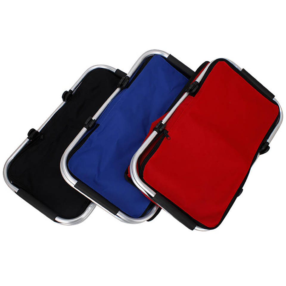 Outdoor outing Aluminum alloy folding basket shopping basket portable picnic basket portable fast food basket Oxford cloth storage basket