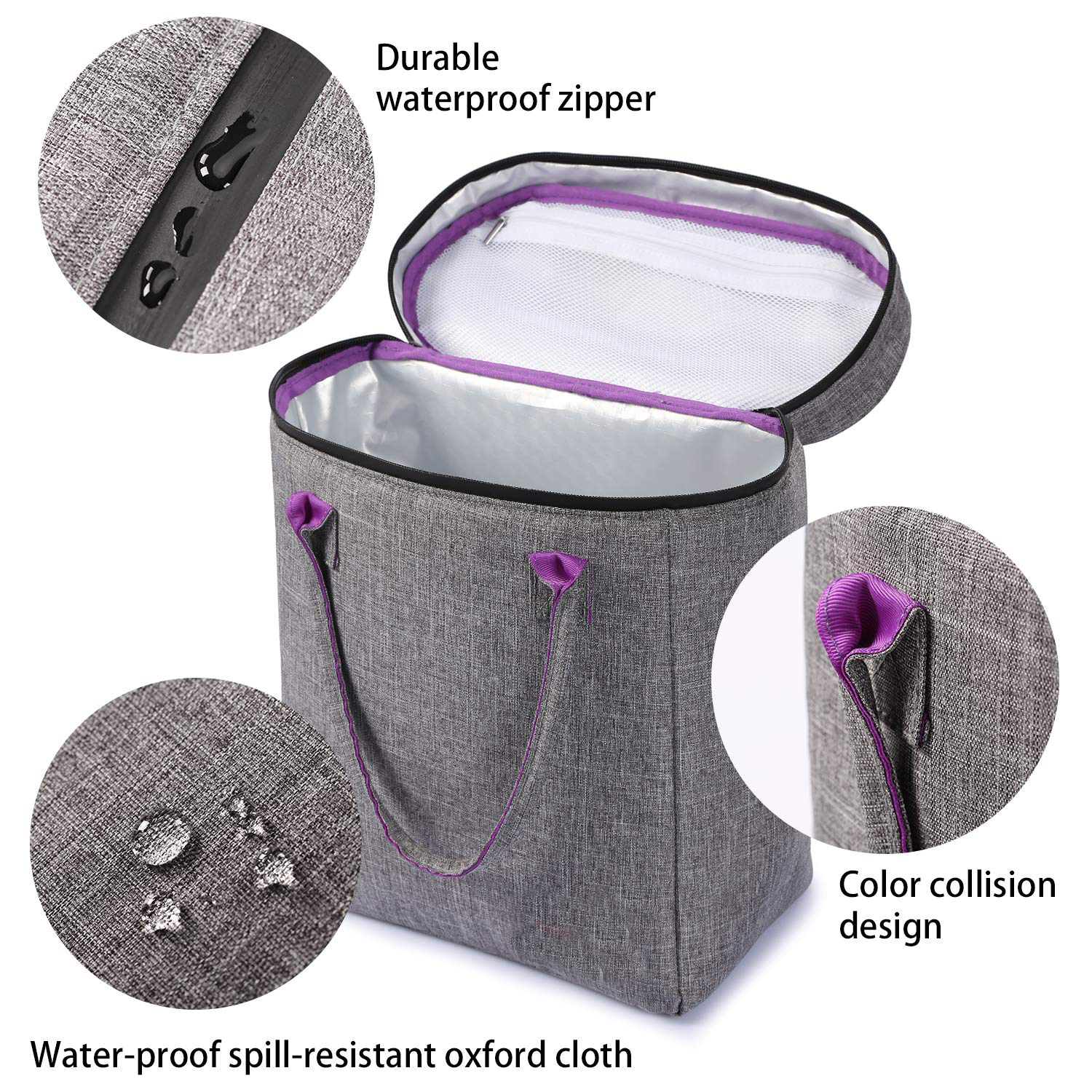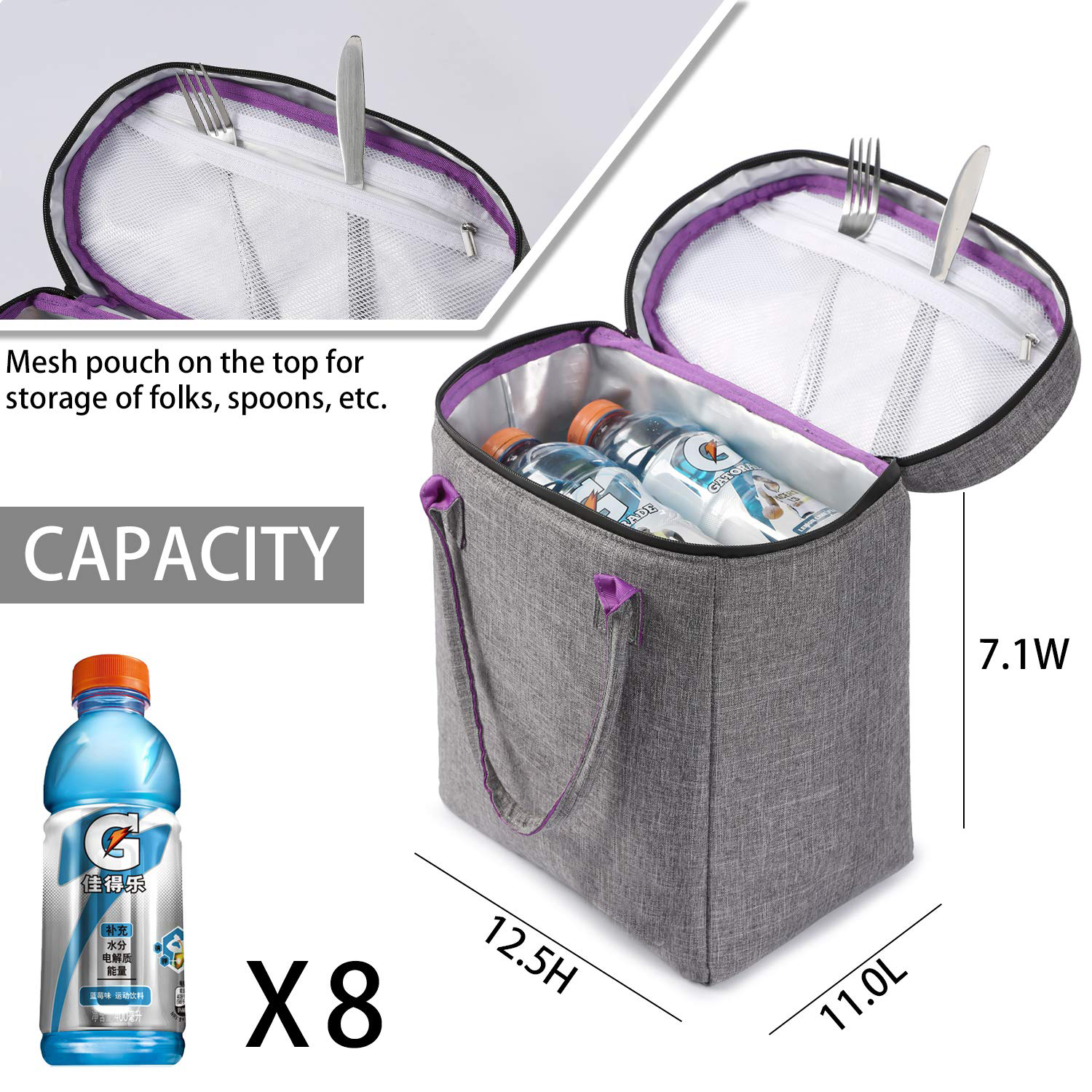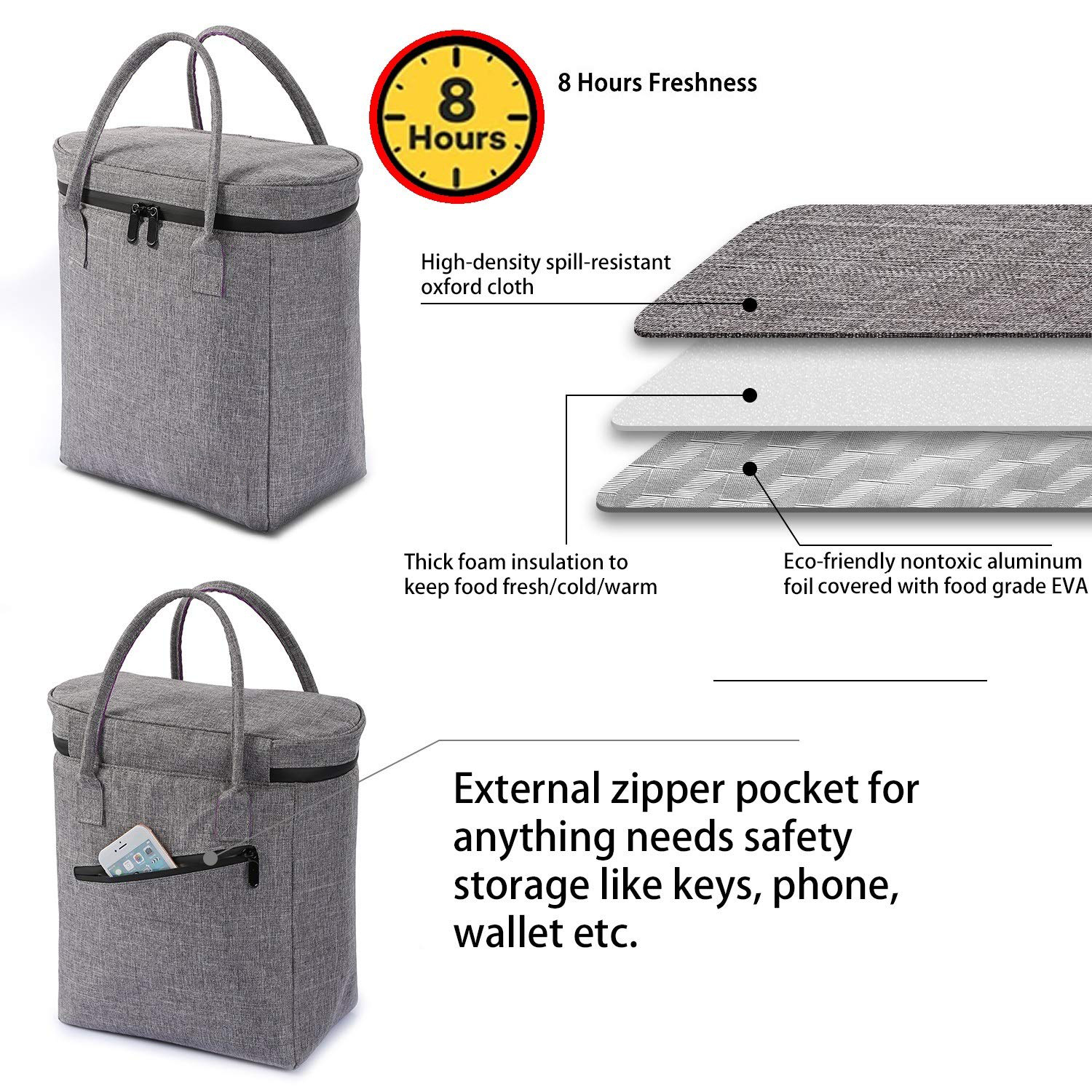 * [BALORAY LUNCH BAG]This lunch bag can be used as lunch bag, picnic bag, sundry bag, suitable for working women.Warm note: Traditional stitching process, so the inside insulated liner is water resistant, but not totally leakproof. * [Standard lunch bag Size]:10x 6.6x 8.5 inch.This lunch bag looks small but with large capacity, it could perfectly fit your lunch box, snacks, and even protein shake bottle.This is the honest feedback from our customers. *[ High Quality Material]:Durable oxford cloth and nontoxic aluminum foil( BPA FREE), perfect to pack your food and lunch containers.We have upgraded Insulation lined interior based on your needs. It will keep your food cold or warm for about 4 hours. ★THERMAL INSULATED: Lining with thick aluminum foil, interior padded with 5mm thicken insulation pearl foam, protect with 300d water resistant matte fabric, lunch box is designed with triple Insulated to keep food stay cold/warm/fresh for hours, perfect for on-the-go meals, picnics, road trips, lunch at the office, the school, the beach and more! ★SPACIOUS & MULTI COMPARTMENTS: Is designed for maximum storage efficiency, 1 main zipped compartment, 1 preposition velcro pocket, 1 practical zip pocket, not only provides you with plenty of space to pack all of your food and snacks you need whole day, as well as pack your keys, cards, phone chargers, napkins, water bottles, utensils, gum or other small stuffs you daily needs. ★THREE CARRYING OPTIONS: reusable lunch box features durable handle and comes with a removable and adjustable shoulder strap which can be adjusted from 18" to 28" when carrying, providing three options to carry: shoulder bag, oblique bag or fashion hand bag. Padded soft strap ensures comfortable carry. Wide opening design makes it convenient to fill and take food. Modern and lightweight design is convenient to be used as your lunch bag, cooler bag, picnic bag, sundry bag or shopping bag.