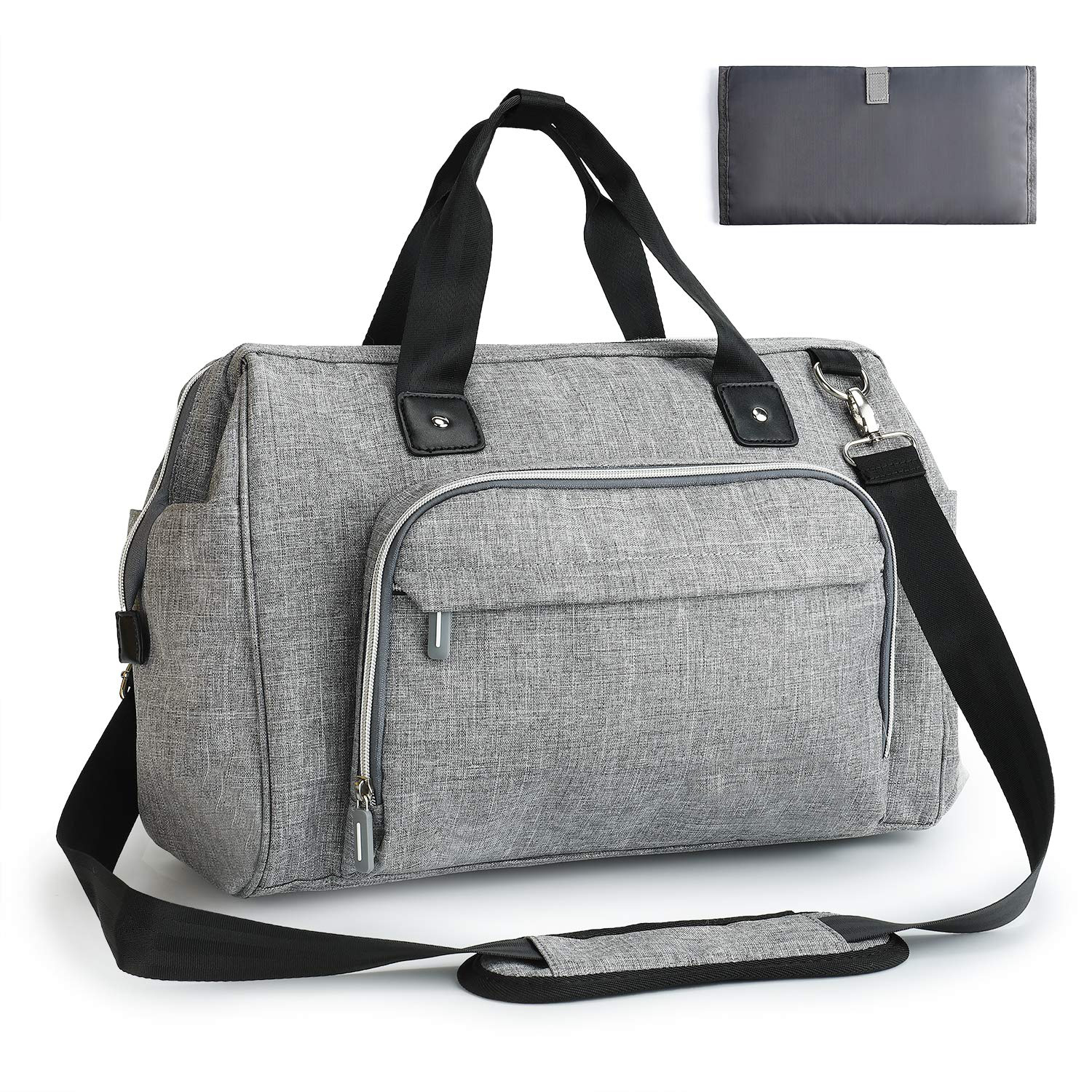 Diaper bag with 1 main pocket and 14 compartments to store everything you'll need for your little one inside, the best part about it is that it's waterproof, easy to clean, durable and lightweight. It will work great for a toddler bag and newborn diaper bag.
