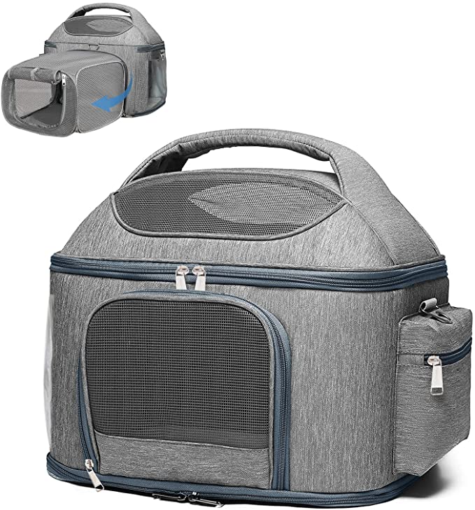 This pet carrier provides two connecting loop handles for balanced carrying as a dual seat belt or luggage strap to secure transport.And it is easy to carry and store, which has a padded shoulder strap and handles.