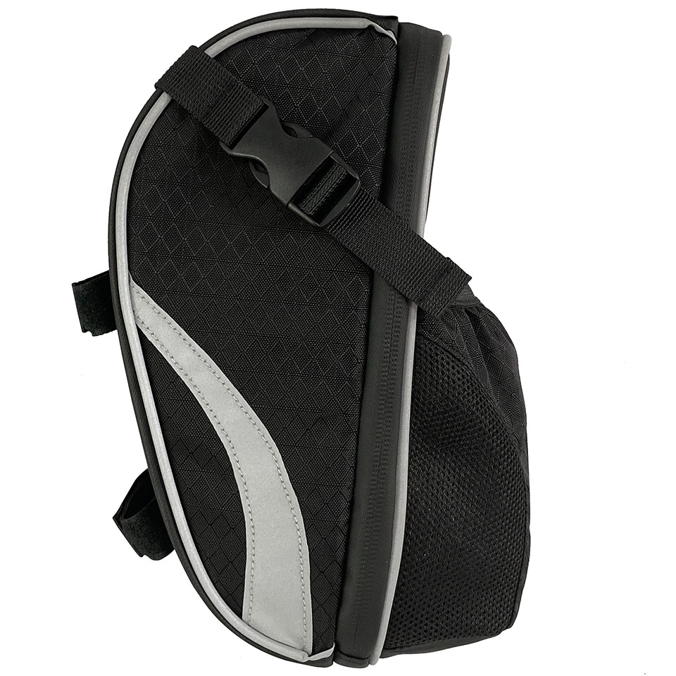 Practical and Stable: Streamlined design for a stylish look. Mounts with velcro straps to secure bike poles at four points. It is in a triangular state, stable and firm, and does not shake when riding. LARGE STORAGE SPACE: The side pockets and compartments inside the main bag are designed to classify and store items for easy storage and access. Easily organize water bottles, wallets, gloves, cell phones, and more. Detailed design: Silver reflective logo to ensure safe riding at night. The elastic water bottle mesh pocket and top adjustable drawstring keep water bottles from falling out. Universal: This bike seat bag is suitable for folding bikes, mountain bikes, road bikes, and other models, and is suitable for commuting, cycling, and different scenarios.