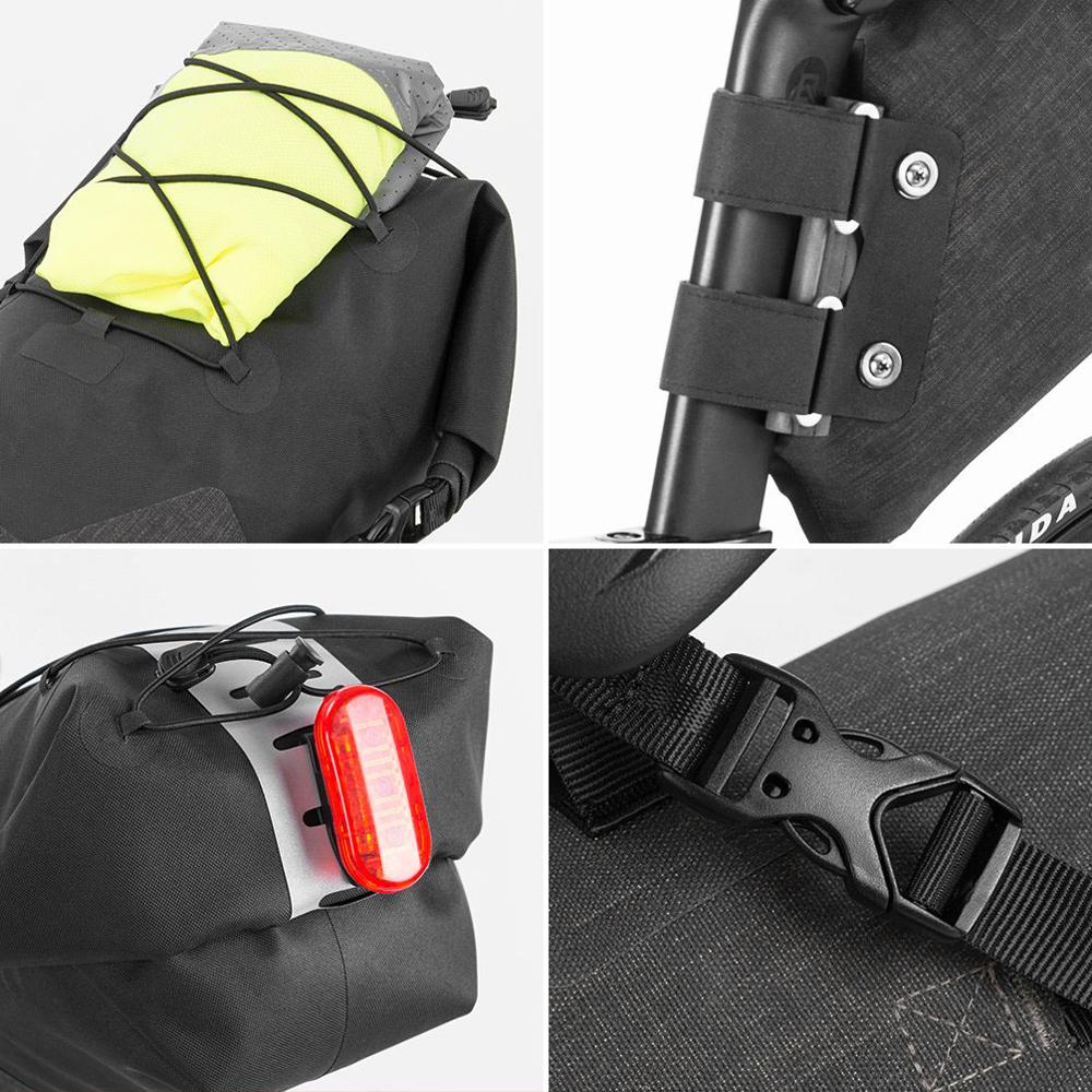 Can be mounted either to your sissy bar or your seat. It mounts using a seat harness or adjustable sissy bar strap system that easily attaches the bag to your motorcycle’s seat, luggage rack, or sissy bar.