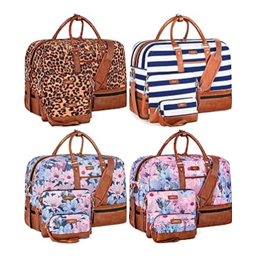 The 3pcs set weekend overnight bag design (travel duffel + crossbody bag + cosmetic bag). |