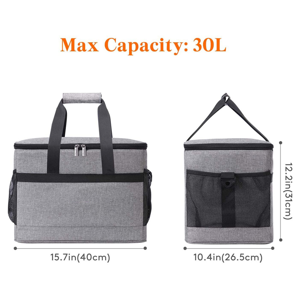 Brand Name: chaumetbag Material: Aluminum Foil, Aluminum Foil Type: Thermal Use: Food Feature: Waterproof, insulated, Thermal Pattern Type: customized product name: Insulated Cooler Bag size: 17.2 x 12.95 x 4.17 inches Logo: customized Colors: grey Usage: food Sample time: 15 days Warranty: 1 year against defect of materials and manufacturing OEM/ODM: Acceptable Capacity: 30L