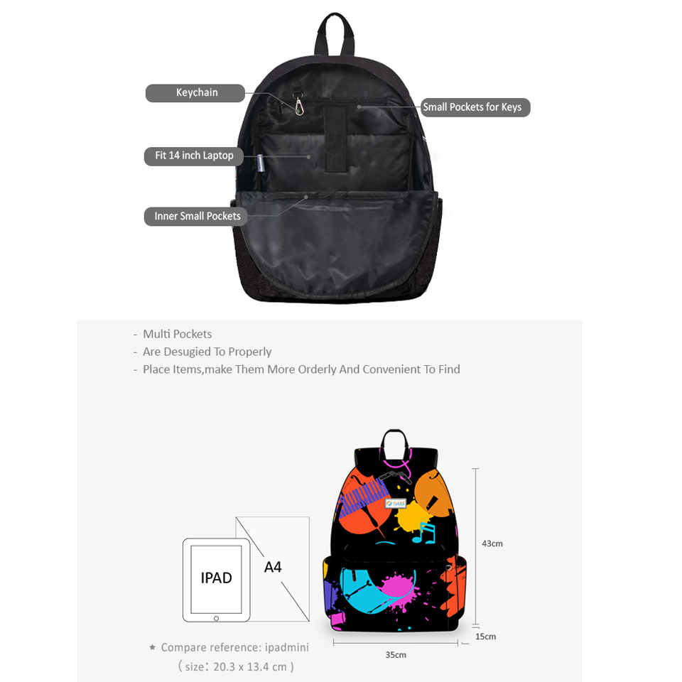 Product name:Laptop Backpack Material:Polyester Color:Black Size:15" x 7" x 19" (LxWxH)