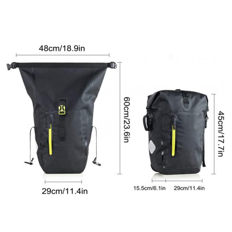 * Extensible Volume: The total volume of this bike pannier is 9L, but it can be extended to 25L large volume - Double side zipper pockets can be opened and extended to 2L capacity, while the second layer zipper on the main pouch can be opened and adds extra volume to the bag
