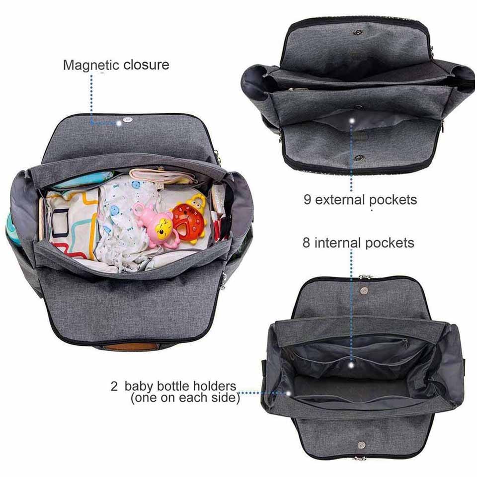 Our diaper backpacks are of the features of lightweight, durable and waterproof with changing pad andhandles. Using insulated material to keep the temperature of the baby bottle store a lot of baby products, and easily take out the diaper from the diaper bag