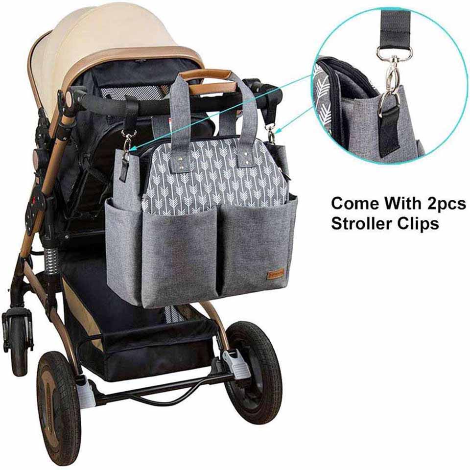 Diaper bag with 1 main pocket and 14 compartments to store everything you'll need for your little one inside, the best part about it is that it's waterproof, easy to clean, durable and lightweight. It will work great for a toddler bag and newborn diaper bag.