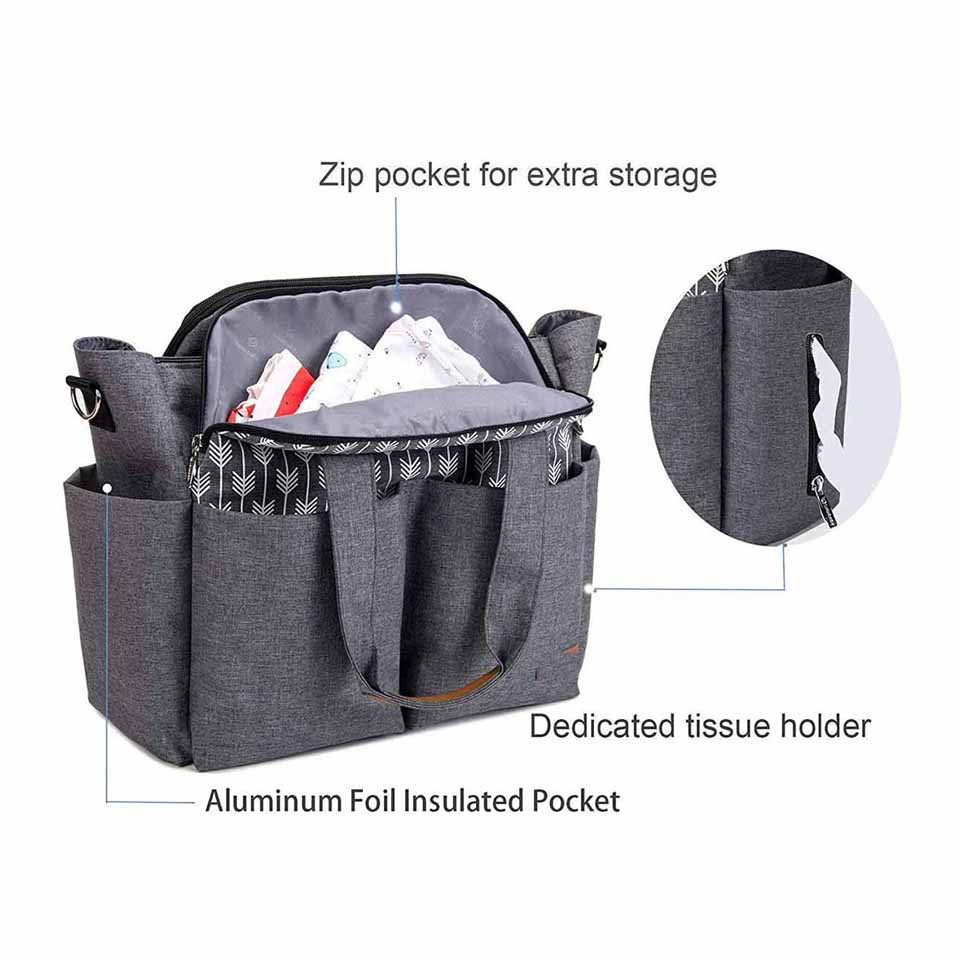 Style: TOTE BAG Material: Polyester Product name: Diaper Caddy Organizer Size: 8 x 11 x 1 inches Usage: Baby Products Organizer Bag Color: Grey Logo: Accept Customized Logo MOQ: 500pcs Sample time: 5-7 Days Certification: BSCI,Sedex,TUV,ISO9001