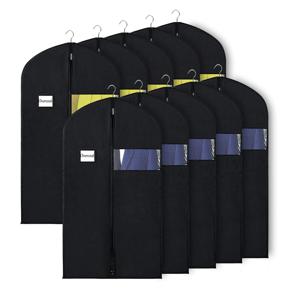 washable and durable. * 【 VISIBLE DESIGN 】 Each hanging garment bag includes a large transparent viewing window, users easily identify the inside clothes without opening the suit bag. This garment storage bags can prevent clothes from wrinkling and make your wardrobe more tidy and comfortable. * 【 LIGHTWEIGHT, FOLDABLE 】 This suit bags are lightweight and easy to fold. Save lots of space. The opening at the top of the garment bag allows for a coat hanger and coat hanger hook can pass through the metal grommet at the bottom of the suit bag for folding storage when you are on a travel. * 【 DURABLE ZIPPER 】 Garment covers come with a durable and smooth zipper. And we added the upper and bottom metal stopper to avoid zipper derailment. * 【 MULTI-PURPOSE BAG 】 Set of 5 clothing garment bags, including 5pcs. Each garment bag could hold 2 suits or 5 t-shirts. The breathable garment cover is perfect for storing your business suits, dresses, coats, jacket and child’s clothes etc, preserving them in excellent condition. |