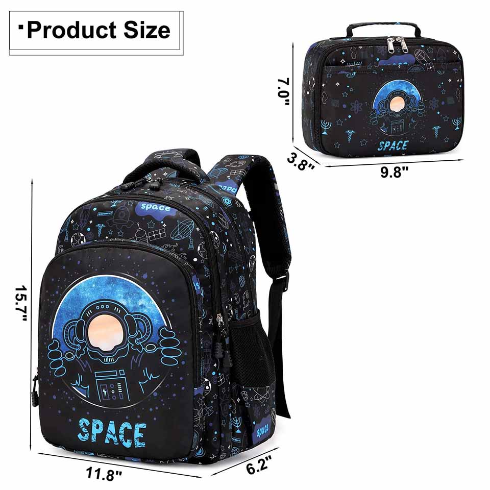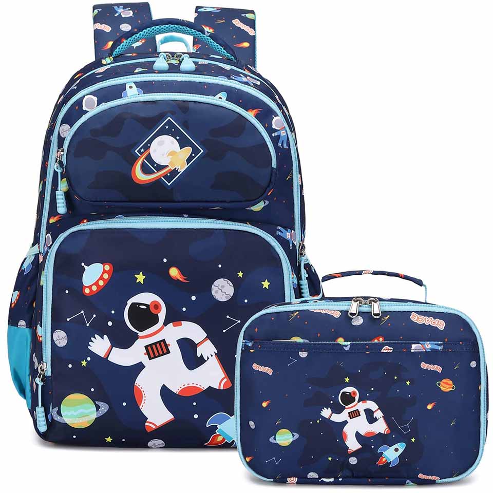 Elementary School Book bag for Kids Astronaut Space Backpack with Lunch Bag