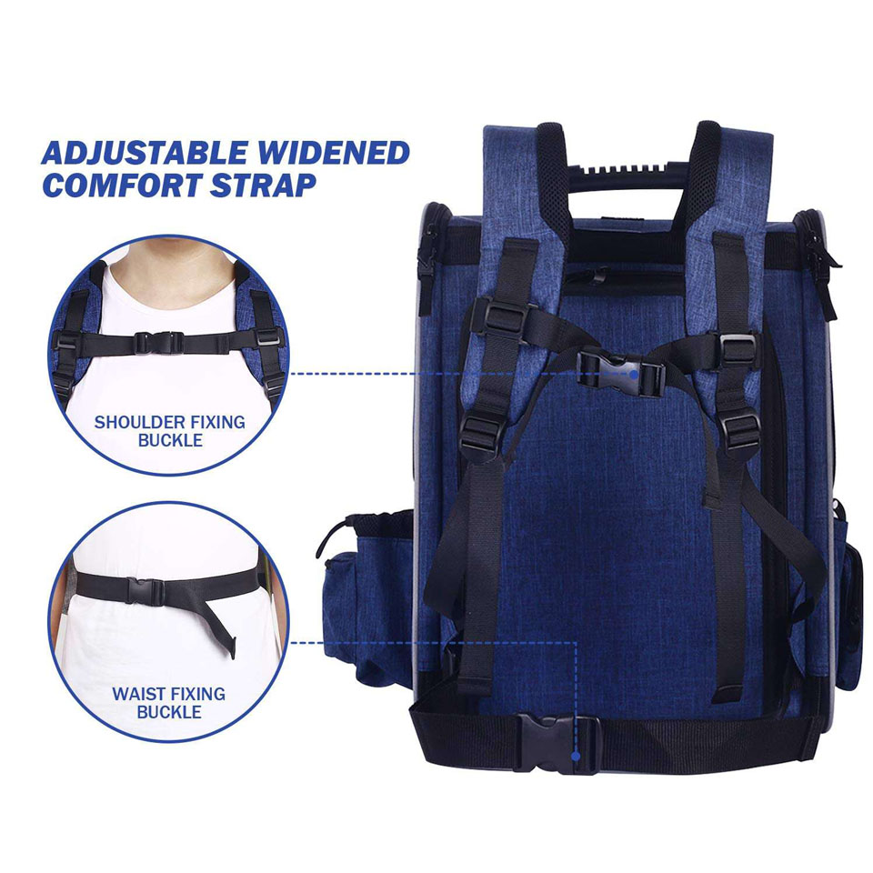 freely. 2.There are two pockets on the side of the backpack for storage.One for waste bags, support of distributors, bottle holder.The other is for storing mobile wallets and other small items. 3.Retractable hook safety rope with zipper to protect pets. 【STOSSDAMPING DESIGN】Elastic sponge back cushion made of honeycomb mesh, breathable, decompression and shock resistant, relieve pressure and travel easily. The widened reinforced shoulder strap can carry a maximum of 6kg.