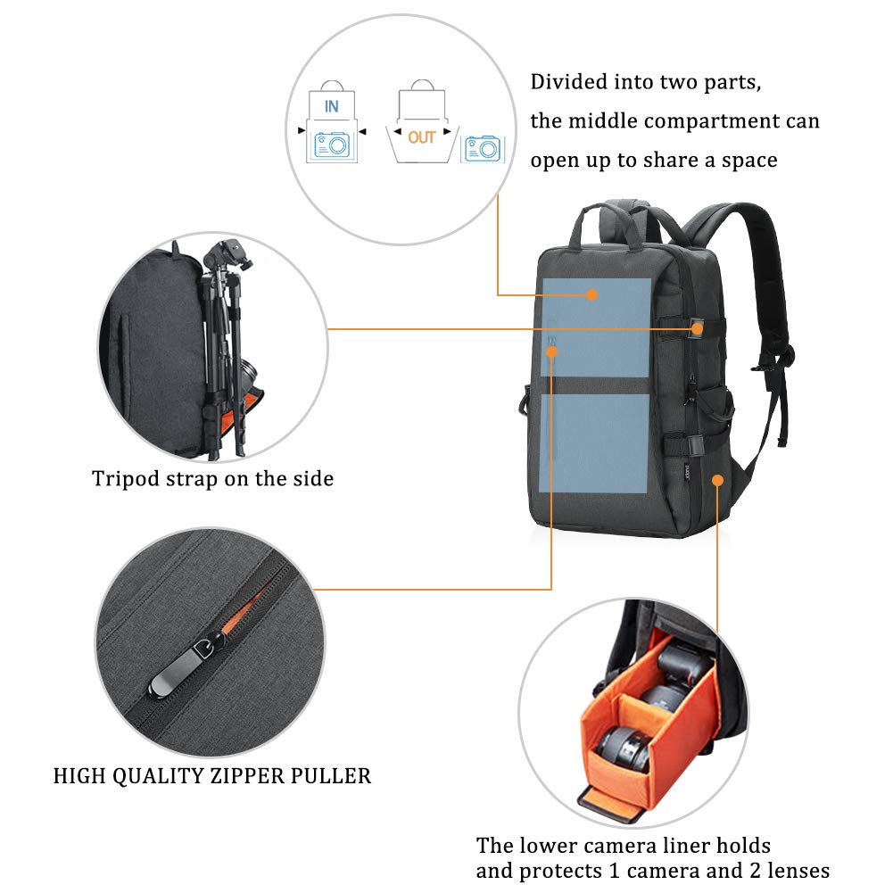 2 in 1 Waterproof Laptop Backpack DSLR Camera Backpack