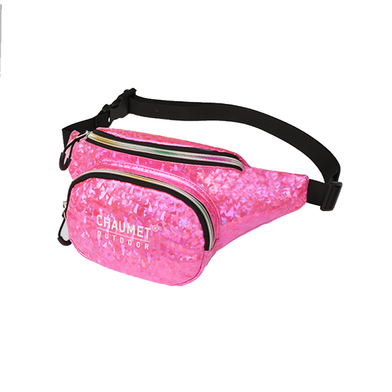 fashion custom waterproof glitter PVC fanny pack, wholesale outdoor travel chest reflective sport waist pouch bag