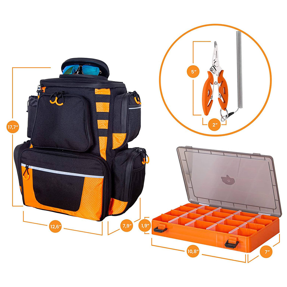 While many other brands sell these pieces individually, we believe in making fishing prep and storage as easy and affordable as possible! Plus making excellent gifts for the fishermen or anglers in your life! Make their day with this top-of-the-line backpack, complete with protective rain cover, 4 tackle boxes. * ✅ Heavy Duty Water-Resistant Backpack – Made from 1200D Nylon, our large, multi-compartment bag is the perfect choice to store all of your tools & gear. With a waterproof plastic inner pocket and hard glasses compartment, your valuables will be safe and dry. Made using durable, water-resistant high density nylon fitted with ergonomic straps, our backpacks are comfortable and made to last. Plus, we've included a protective rain cover whether you are fishing on the ocean, river, or lake! * ✅ Self Repairing Water-Resistant Zipper Design - we not only believe we should provide the best product, but the most innovative as well! Unique to our product, water resistant SBS self-repairing zippers ensure added protecting for your fishing tackle storage gear and equipment. Plus, each zipper is fitted with quick access loops so you don't lose any time when a catch is on the line! * ✅ Multipurpose Fishing Pliers - Our top-of-the-line pliers make an excellent fish hook remover or braid cutter with a split-ring tip jaw. The high quality stainless steel is resistant and designed to last for years to come! Plus, with an ergonomic ABS hand grip, they are comfortable and effective! Designed with a spring loaded mechanism and safety latch as extra safety precautions, we've also included a lanyard that you can attach to the backpack or a belt for easy access. * ✅ 4 Bait and Tackle Trays Included - The roomy main pocket of our bag is perfectly sized to fit the 4 tackle boxes included in this kit. Every organizer tray comes with 20 individual compartments - that's a total of 80 compartments to store your favorite lures, bait, and other tackle and lures. No need to pick before you leave, take your choices with you on your next outdoor adventure! |