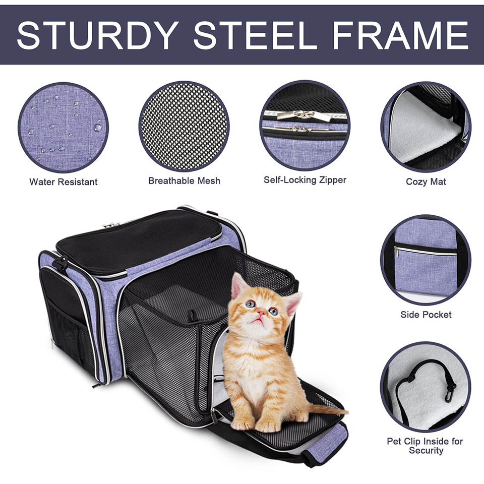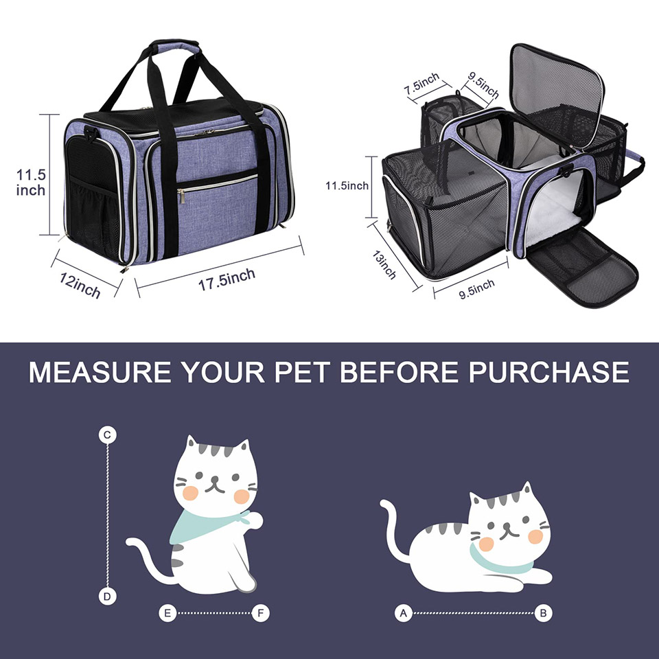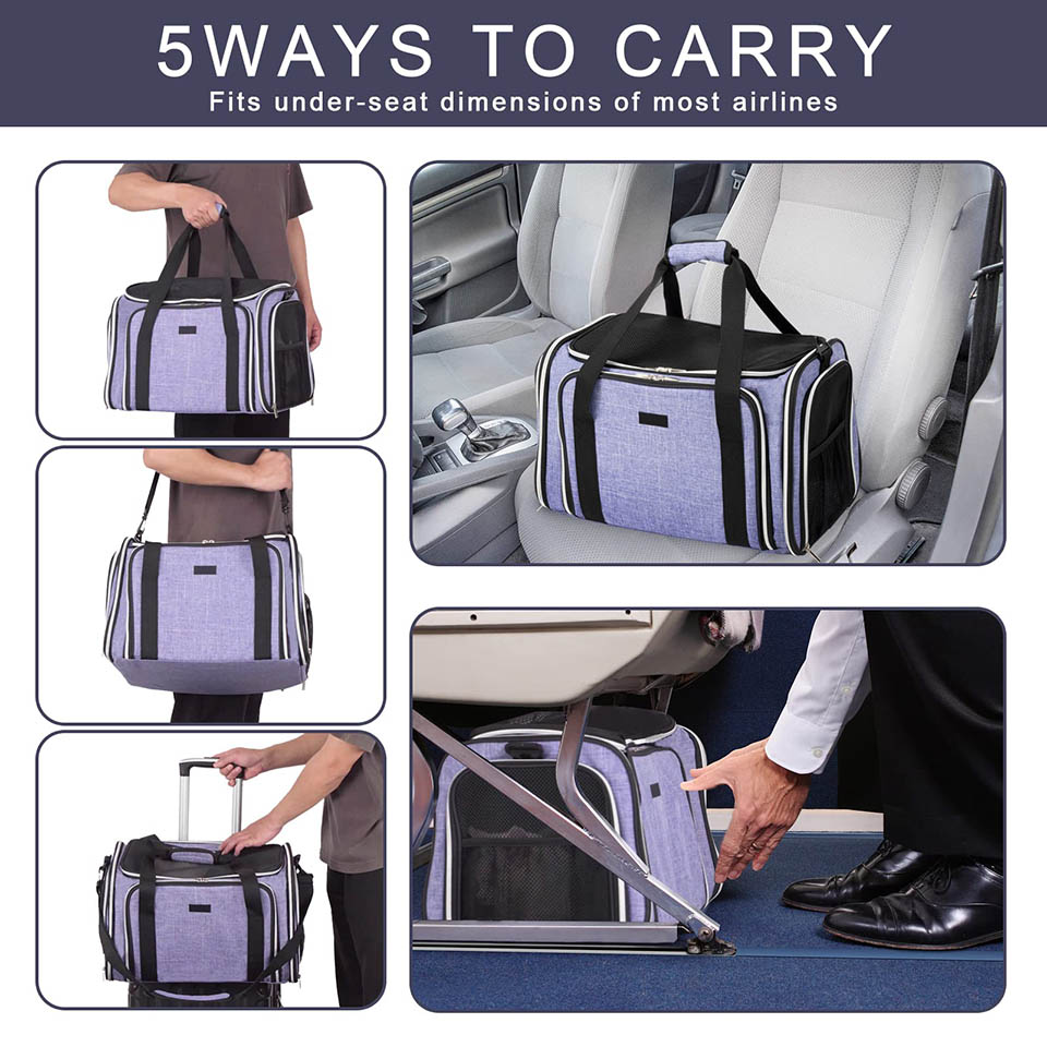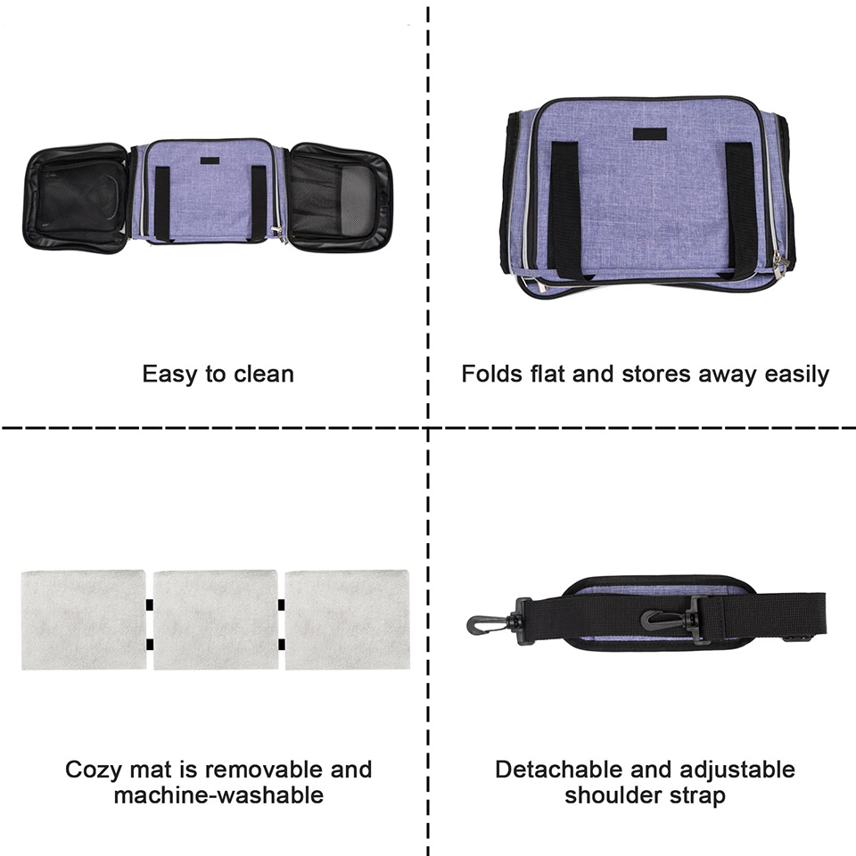 Type: Pet Cages, Carriers & Houses Item Type: Soft-Sided Carriers Closure Type: Zipper Material: Nylon Pattern: Animal Style: Fashion Season: All Seasons Cage, Carrier & House Type: Carriers Application: Small Animals Feature: Eco-Friendly, Breathable, Waterproof Size: 16.1x13.8x10.4inches Certificates: BSCI,Sedex,TUV,ISO9001 Sample time: 7-10 days Sample charges: USD50 OEM/ODM: Accepable Function: 2 Way Expandable Soft Sided Airline Approved Pet Carrier Warranty: 1 year against defect of materials and manufacture