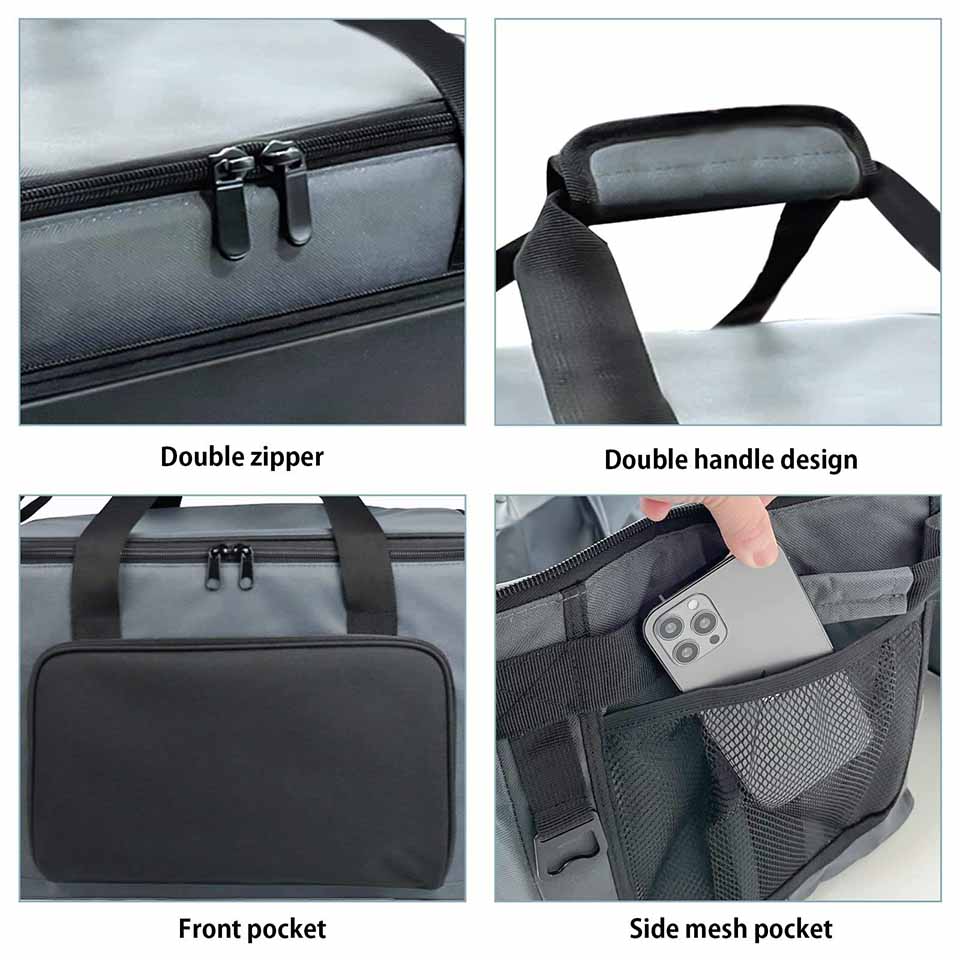 Dimensions: 12" (L) x 7" (W) x 9" (H) YKK Zippers Ultra-Strong Ripstop Fabric Metal Hardware Extra Thick PEVA Inner Lining EPA foam Insulation Seatbelt Webbing Handle and Strap