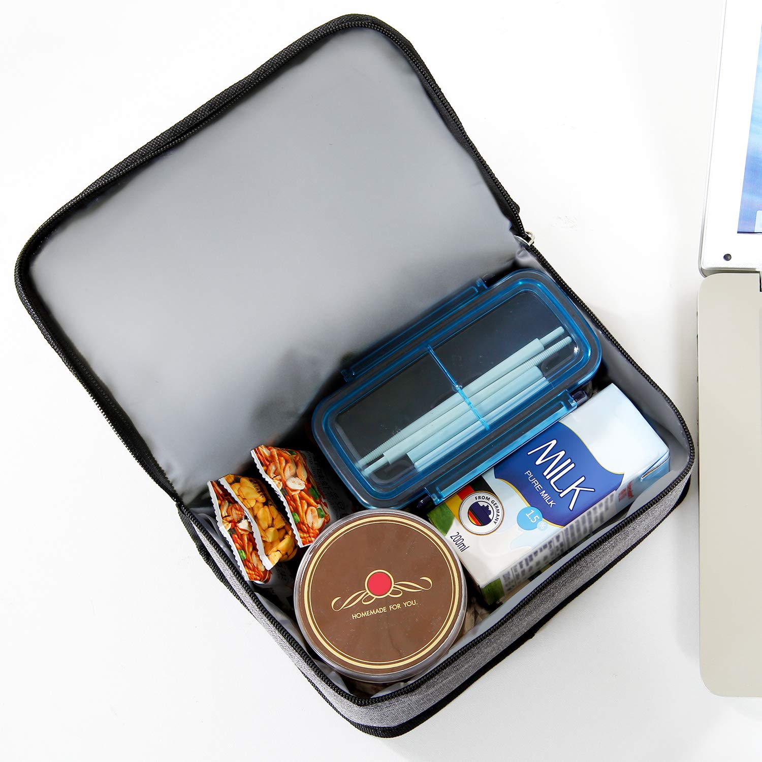 * [BALORAY LUNCH BAG]This lunch bag can be used as lunch bag, picnic bag, sundry bag, suitable for working women.Warm note: Traditional stitching process, so the inside insulated liner is water resistant, but not totally leakproof. * [Standard lunch bag Size]:10x 6.6x 8.5 inch.This lunch bag looks small but with large capacity, it could perfectly fit your lunch box, snacks, and even protein shake bottle.This is the honest feedback from our customers. *[ High Quality Material]:Durable oxford cloth and nontoxic aluminum foil( BPA FREE), perfect to pack your food and lunch containers.We have upgraded Insulation lined interior based on your needs. It will keep your food cold or warm for about 4 hours. ★THERMAL INSULATED: Lining with thick aluminum foil, interior padded with 5mm thicken insulation pearl foam, protect with 300d water resistant matte fabric, lunch box is designed with triple Insulated to keep food stay cold/warm/fresh for hours, perfect for on-the-go meals, picnics, road trips, lunch at the office, the school, the beach and more! ★SPACIOUS & MULTI COMPARTMENTS: Is designed for maximum storage efficiency, 1 main zipped compartment, 1 preposition velcro pocket, 1 practical zip pocket, not only provides you with plenty of space to pack all of your food and snacks you need whole day, as well as pack your keys, cards, phone chargers, napkins, water bottles, utensils, gum or other small stuffs you daily needs. ★THREE CARRYING OPTIONS: reusable lunch box features durable handle and comes with a removable and adjustable shoulder strap which can be adjusted from 18" to 28" when carrying, providing three options to carry: shoulder bag, oblique bag or fashion hand bag. Padded soft strap ensures comfortable carry. Wide opening design makes it convenient to fill and take food. Modern and lightweight design is convenient to be used as your lunch bag, cooler bag, picnic bag, sundry bag or shopping bag.