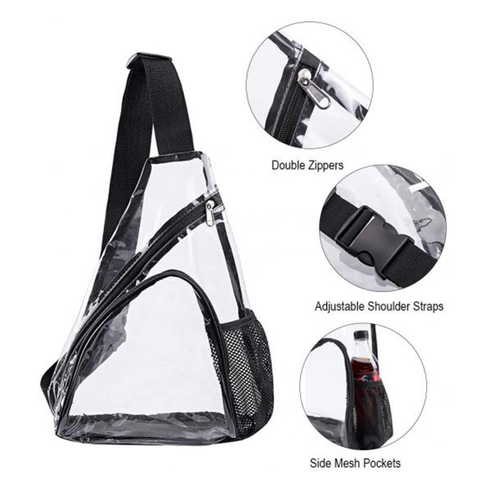 * Designed for Comfort:Wear this clear sling backpack over either shoulder comfortably, or in the front across.Wide side adjustable shoulder strap makes you forget you're even wearing this bag.
