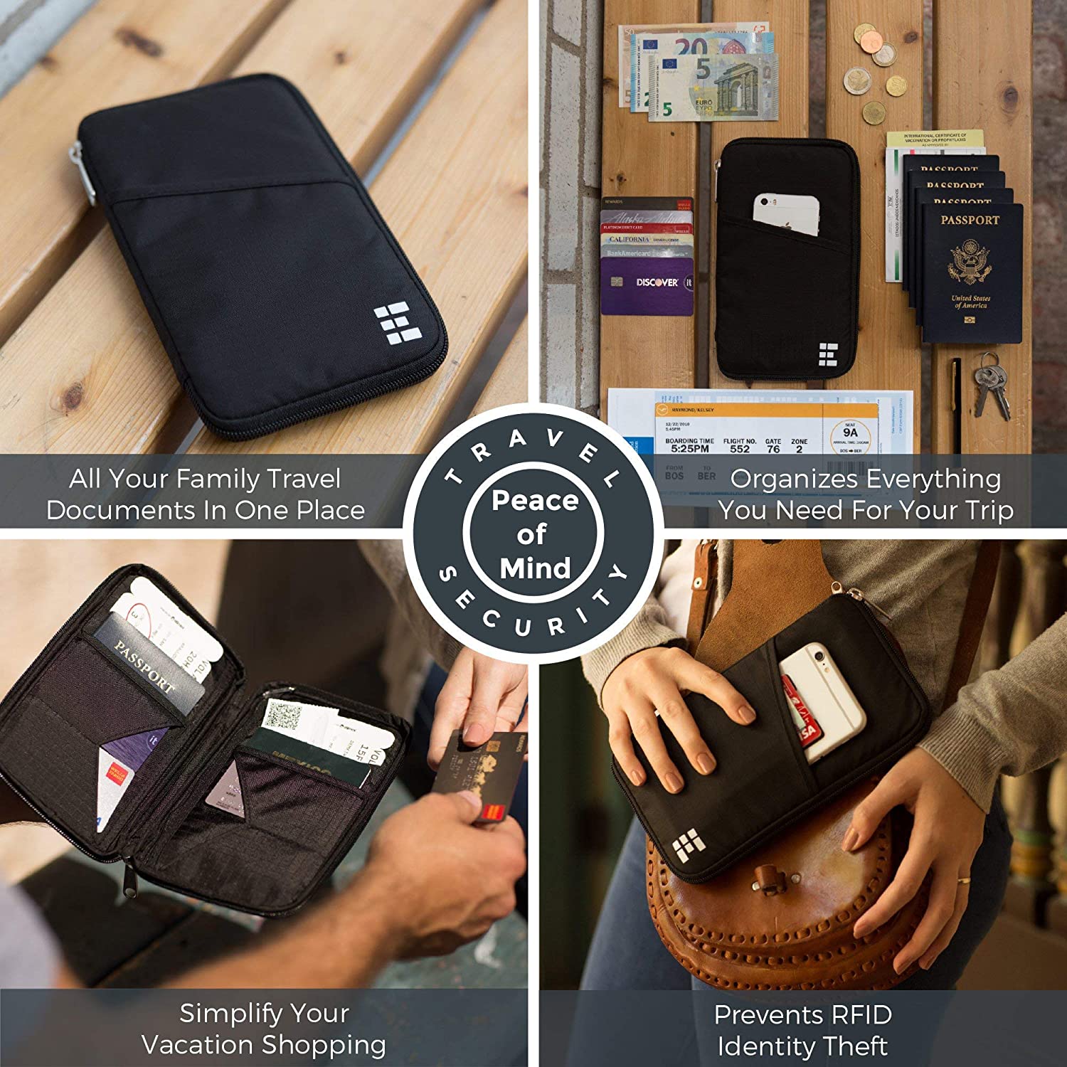 *DESIGNED FOR SAFE INTERNATIONAL TRAVEL - The passport organizer for family is invaluable for airports, crowded marketplaces, an