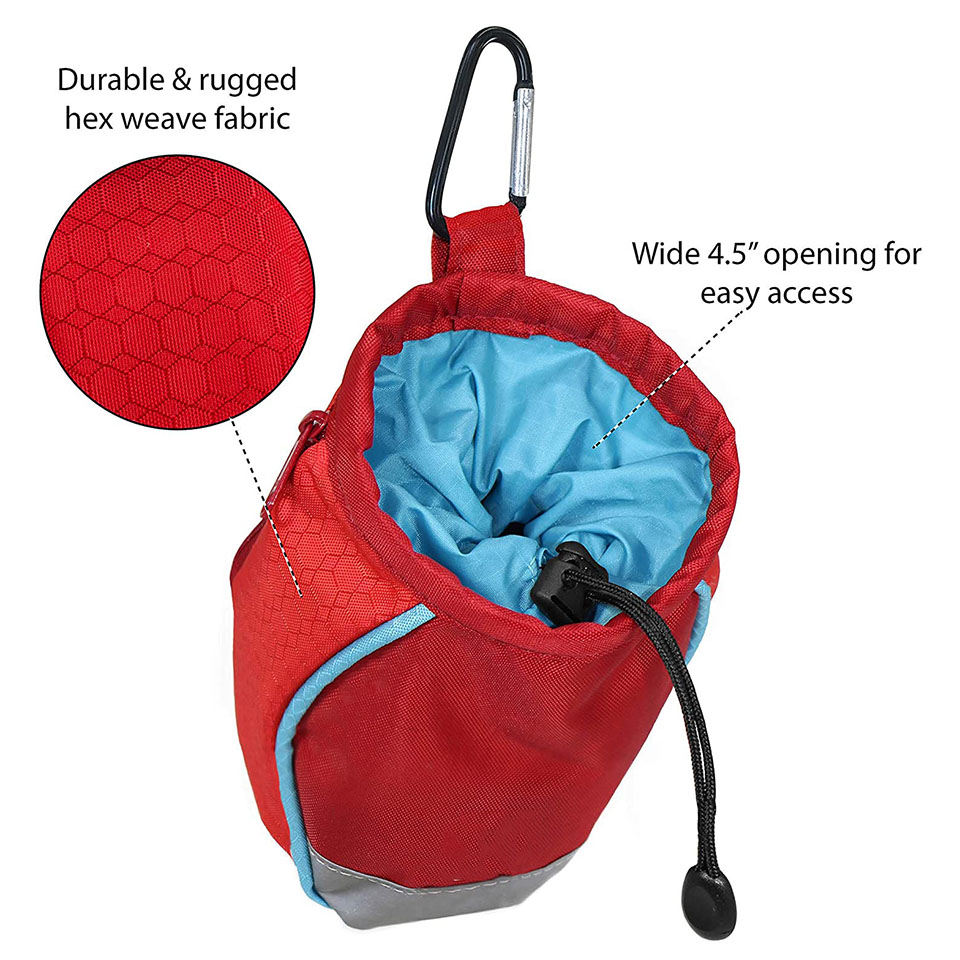 Quick Details Place of Origin: China Material: Cloth, polyester Product name: Dog Treat Bag Color: Customized Color Usage: Carry pet stuff Logo: Customized Logo MOQ: 500 Pcs OEM/ODM: Acccept Certificate: BSCI,Sedex,TUV,ISO9001 Size: 5.5 x 3.5 x 6 inches