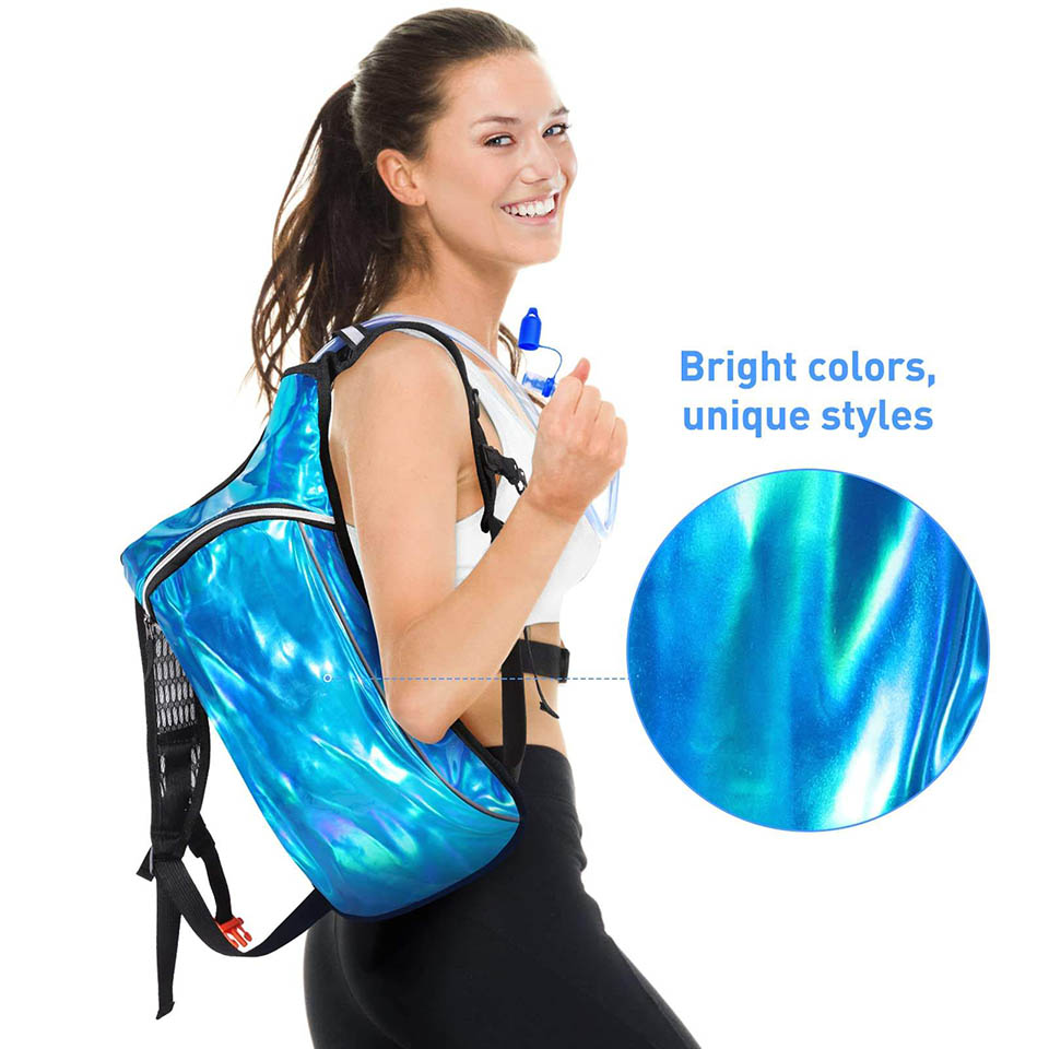 Essential details Place of Origin: Fujian, China Brand Name: Chaumetbag Feature: Waterproof Application: Outdoor Item Type: Hydration Backpack Closure Type: zipper Shape: Quadrate Material: Holographic Leather Pattern: Solid Capacity: 3 Litre Size: 21L*7W*45H cm Color: Customized Certificates: BSCI,Sedex,TUV,ISO9001 Sample time: 5-7 Days Sample charges: USD60 Warranty: 1 year against defect of materials and manufacturing OEM/ODM: Accepable Product name: Hydration Backpack MOQ: 500pcs