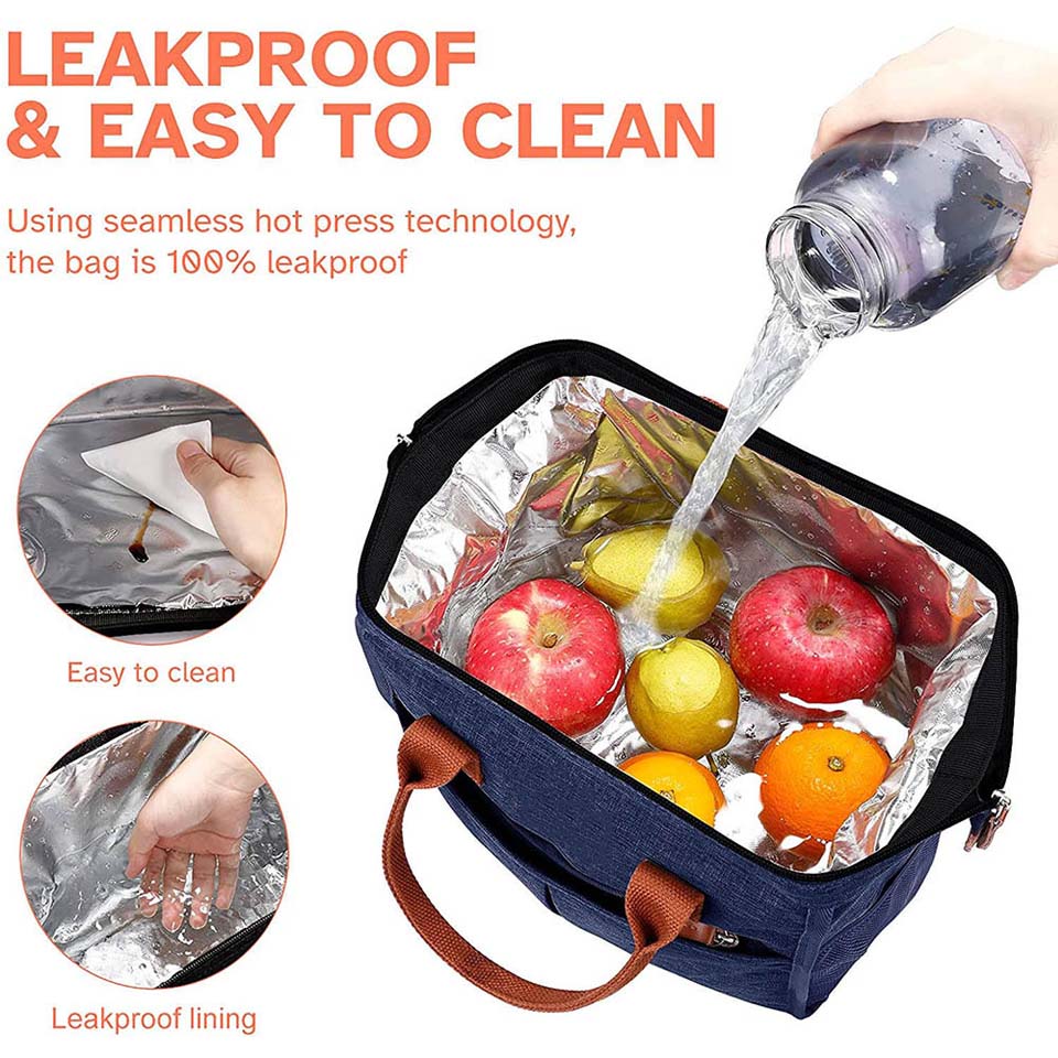 * [BALORAY LUNCH BAG]This lunch bag can be used as lunch bag, picnic bag, sundry bag, suitable for working women.Warm note: Traditional stitching process, so the inside insulated liner is water resistant, but not totally leakproof. * [Standard lunch bag Size]:10x 6.6x 8.5 inch.This lunch bag looks small but with large capacity, it could perfectly fit your lunch box, snacks, and even protein shake bottle.This is the honest feedback from our customers. *[ High Quality Material]:Durable oxford cloth and nontoxic aluminum foil( BPA FREE), perfect to pack your food and lunch containers.We have upgraded Insulation lined interior based on your needs. It will keep your food cold or warm for about 4 hours. ★THERMAL INSULATED: Lining with thick aluminum foil, interior padded with 5mm thicken insulation pearl foam, protect with 300d water resistant matte fabric, lunch box is designed with triple Insulated to keep food stay cold/warm/fresh for hours, perfect for on-the-go meals, picnics, road trips, lunch at the office, the school, the beach and more! ★SPACIOUS & MULTI COMPARTMENTS: Is designed for maximum storage efficiency, 1 main zipped compartment, 1 preposition velcro pocket, 1 practical zip pocket, not only provides you with plenty of space to pack all of your food and snacks you need whole day, as well as pack your keys, cards, phone chargers, napkins, water bottles, utensils, gum or other small stuffs you daily needs. ★THREE CARRYING OPTIONS: reusable lunch box features durable handle and comes with a removable and adjustable shoulder strap which can be adjusted from 18" to 28" when carrying, providing three options to carry: shoulder bag, oblique bag or fashion hand bag. Padded soft strap ensures comfortable carry. Wide opening design makes it convenient to fill and take food. Modern and lightweight design is convenient to be used as your lunch bag, cooler bag, picnic bag, sundry bag or shopping bag.