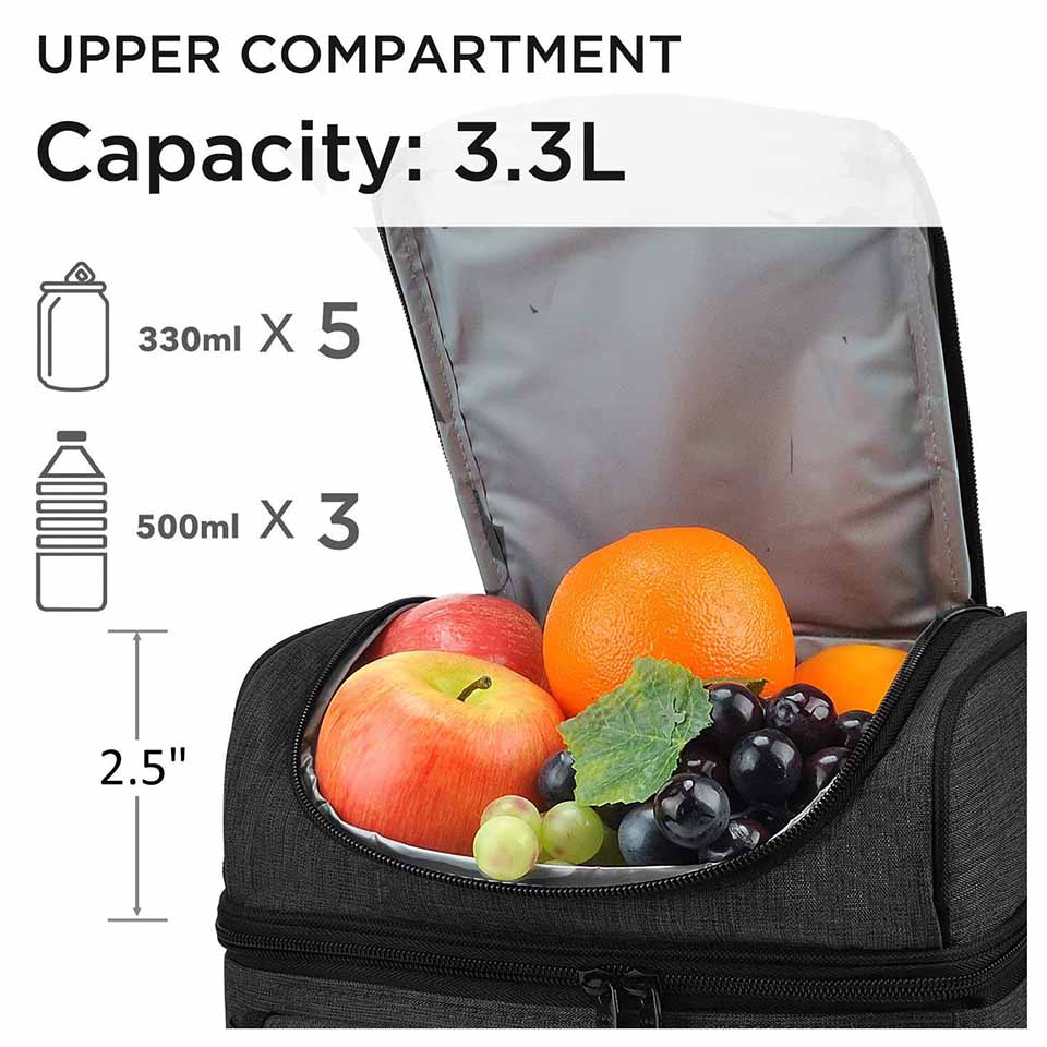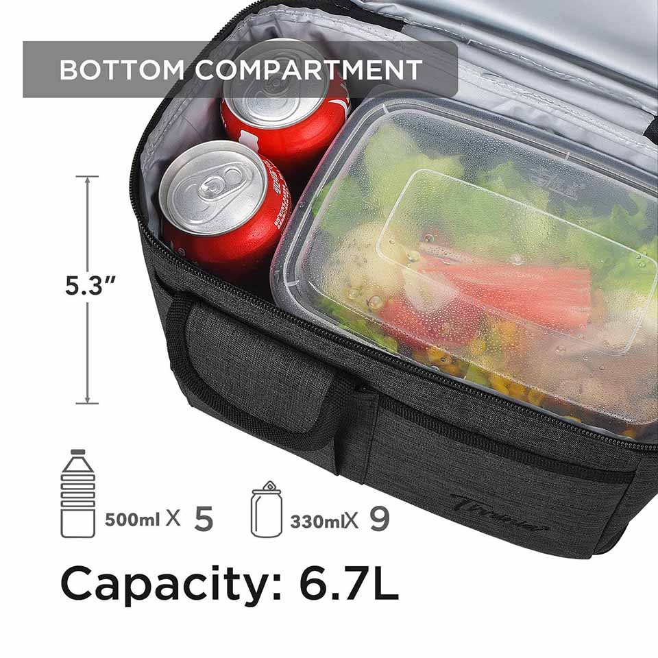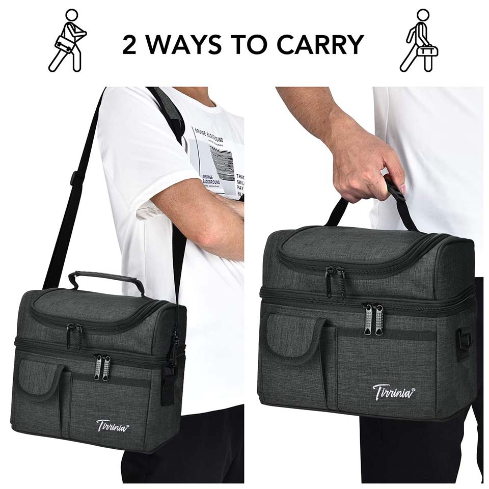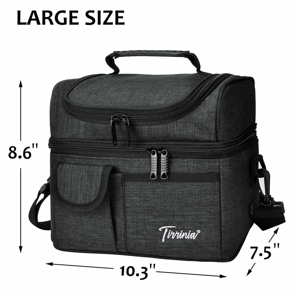 Insulated Lunch Bag, Leakproof Thermal Bento Cooler Tote for Women and Men, Dual Compartment with Shoulder Strap