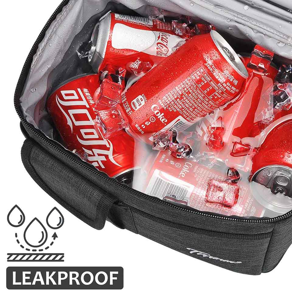 This soft cooler lunch bag is made of insulating thick foam and PEVA to keep food/drinks cool or warm for over 6