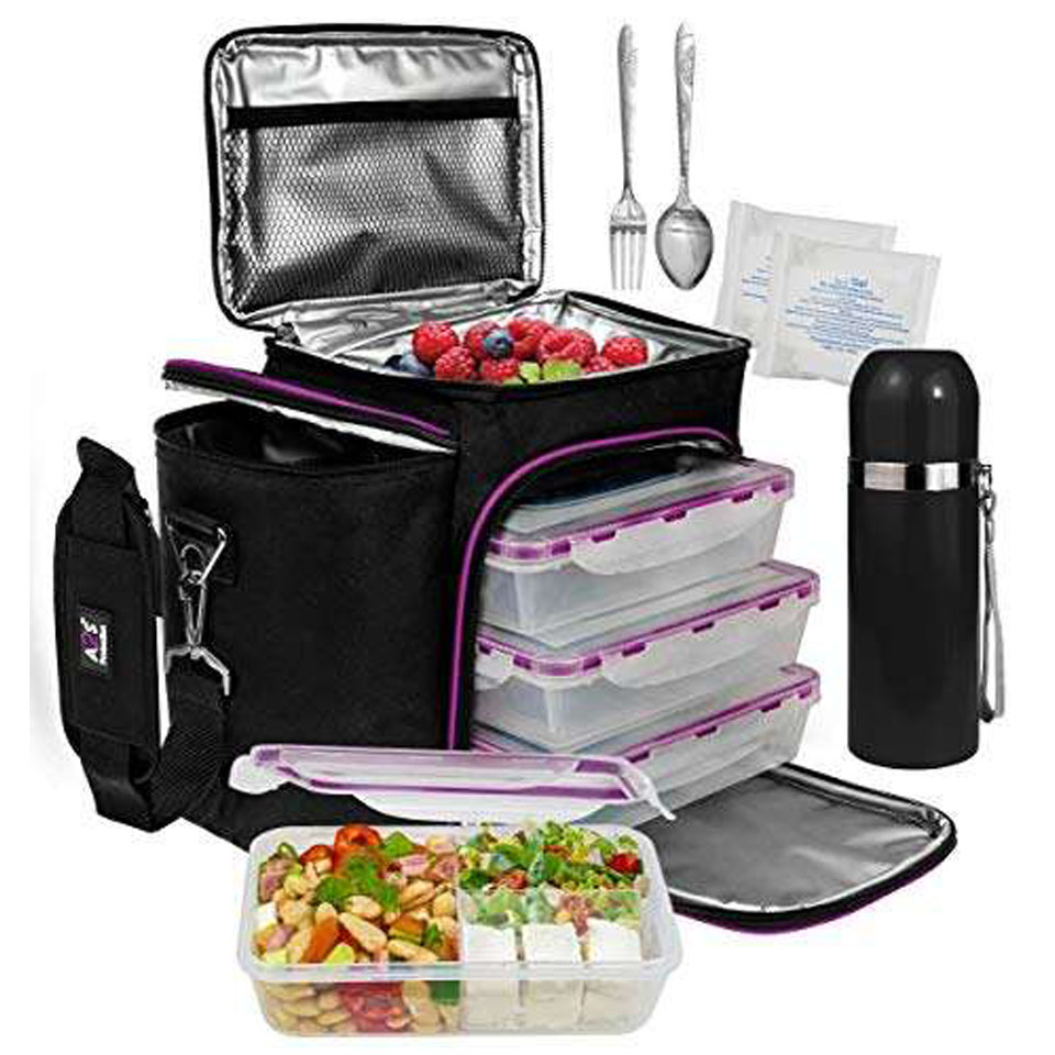 1.You get 3 Portion Control Containers - Enough containers to get you started on the road to achieving your goal with meal prep. 2.You get 4 Massive Insulated Compartments - A Heap of room to put all your containers inside, plus room for 2+ shakes and fruits,nut,vitamins and anything else you can think off. 3.All Containers and are BPA Free, dishwasher, microwave and freezer safe. - This mean you get put these containers anywhere you like and they are going to stand up to the test of time. 4.Has a Handle and Shoulder strap.